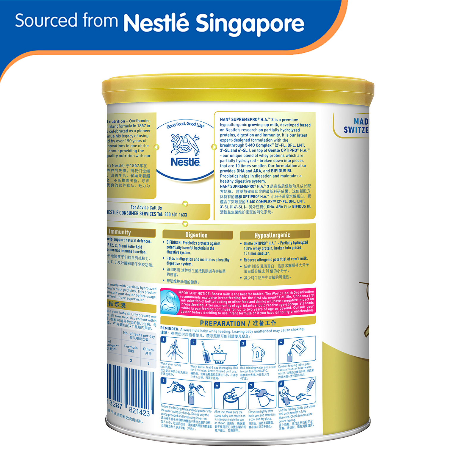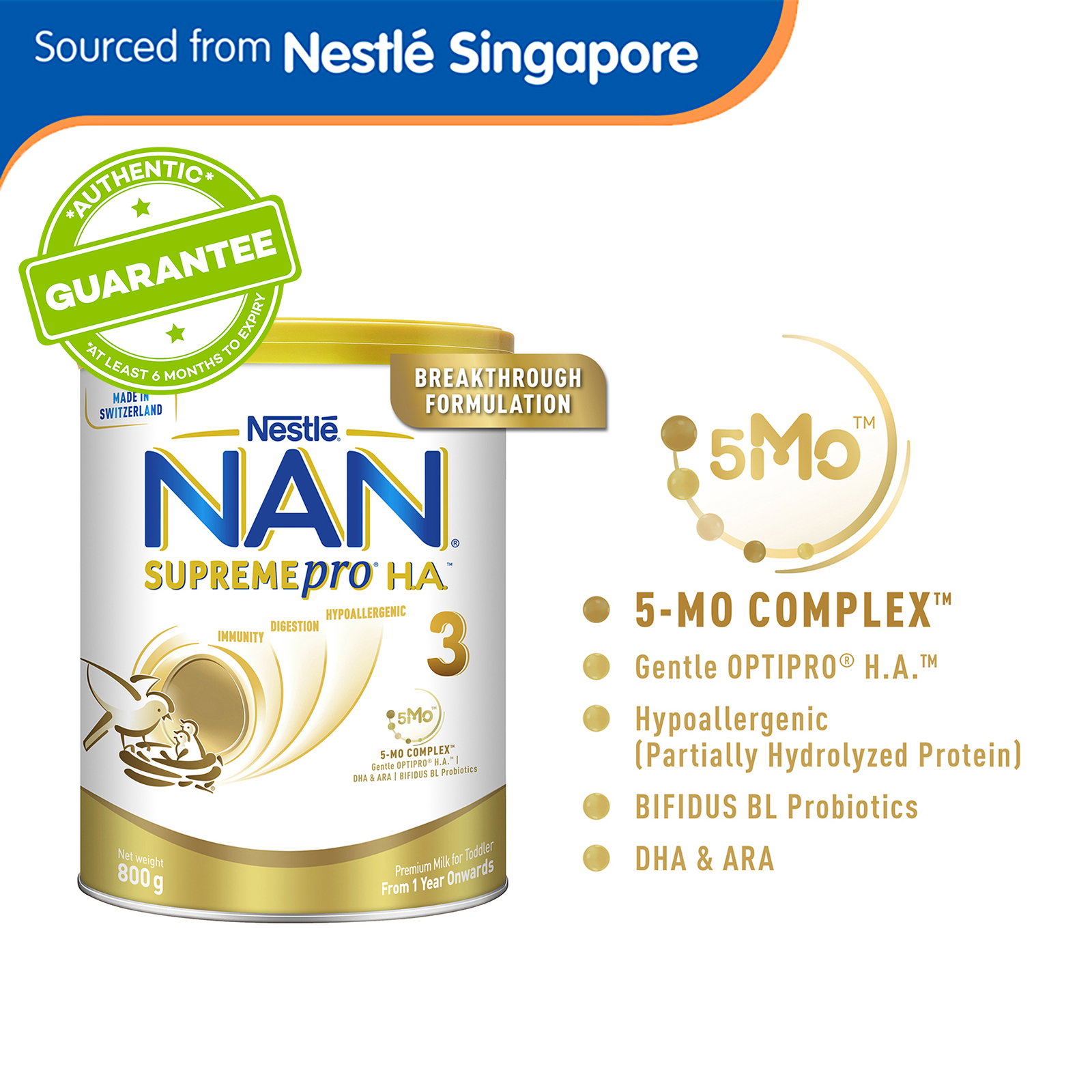 Nestle NAN SupremePro H.A. Stage 3 Growing Up Milk 800g - From 12 Months