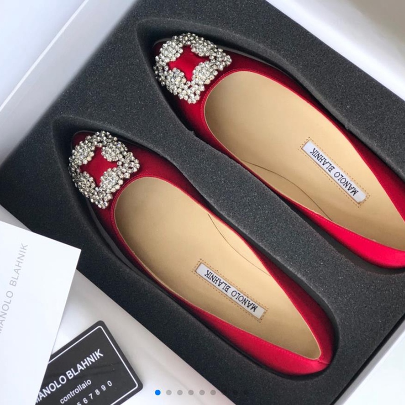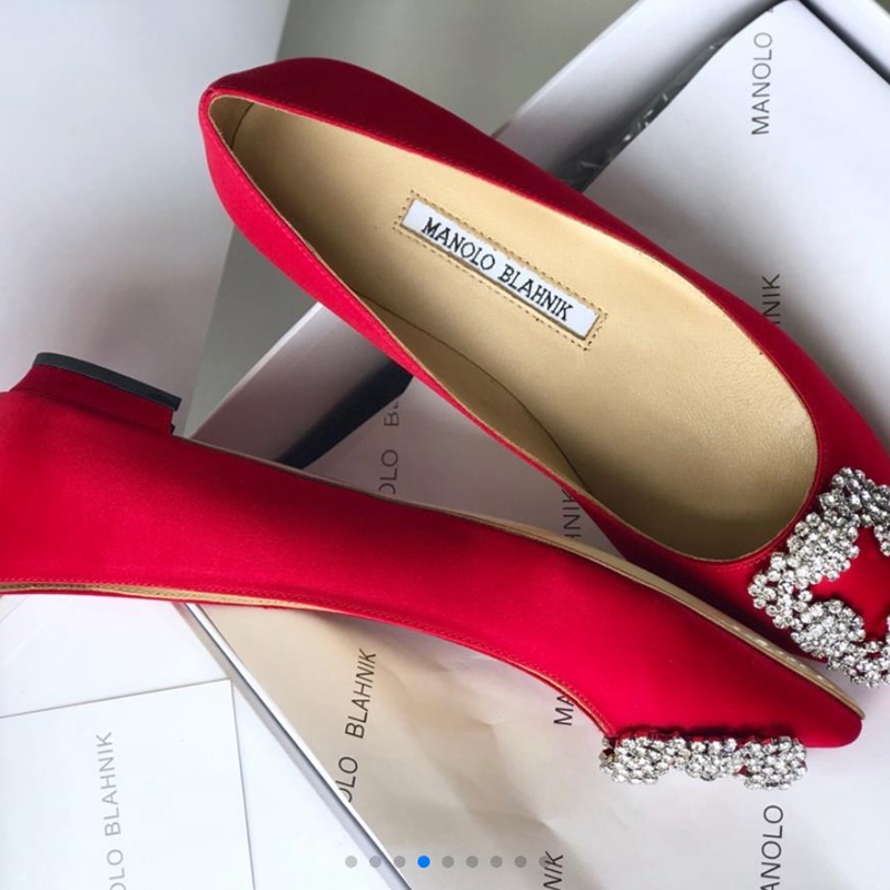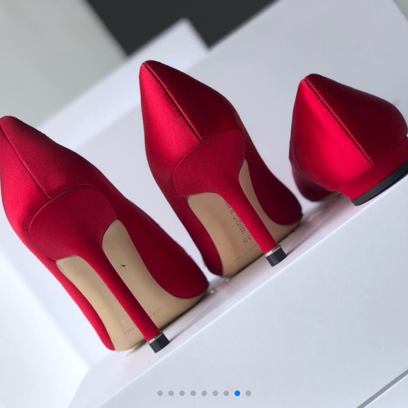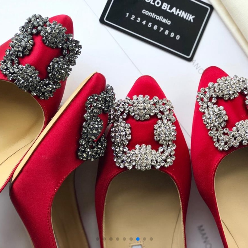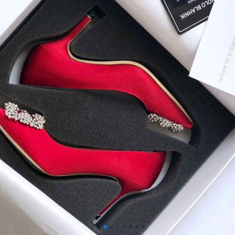 Manolo Blahnik Women's High Heels Red Sexy Stiletto Pointed Diamond Korean Version Banquet Women's Shoes 34-40