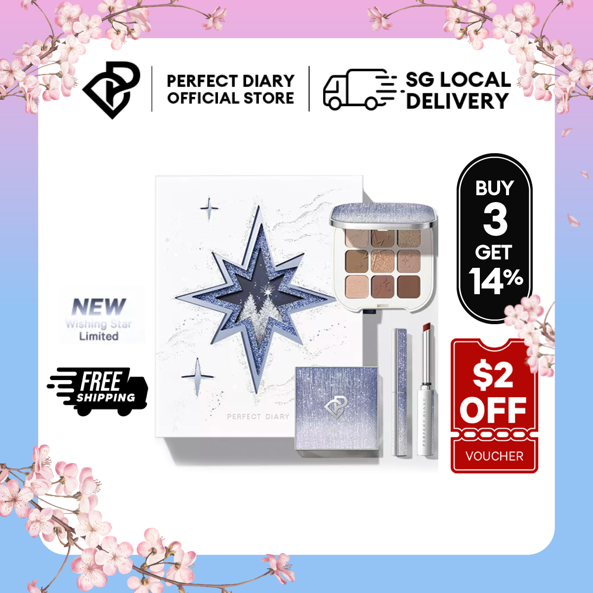 [SG Official] Perfect Diary Wishing Star Collection Set Lipstick Eye Shadow Loose Power Christmas Gift