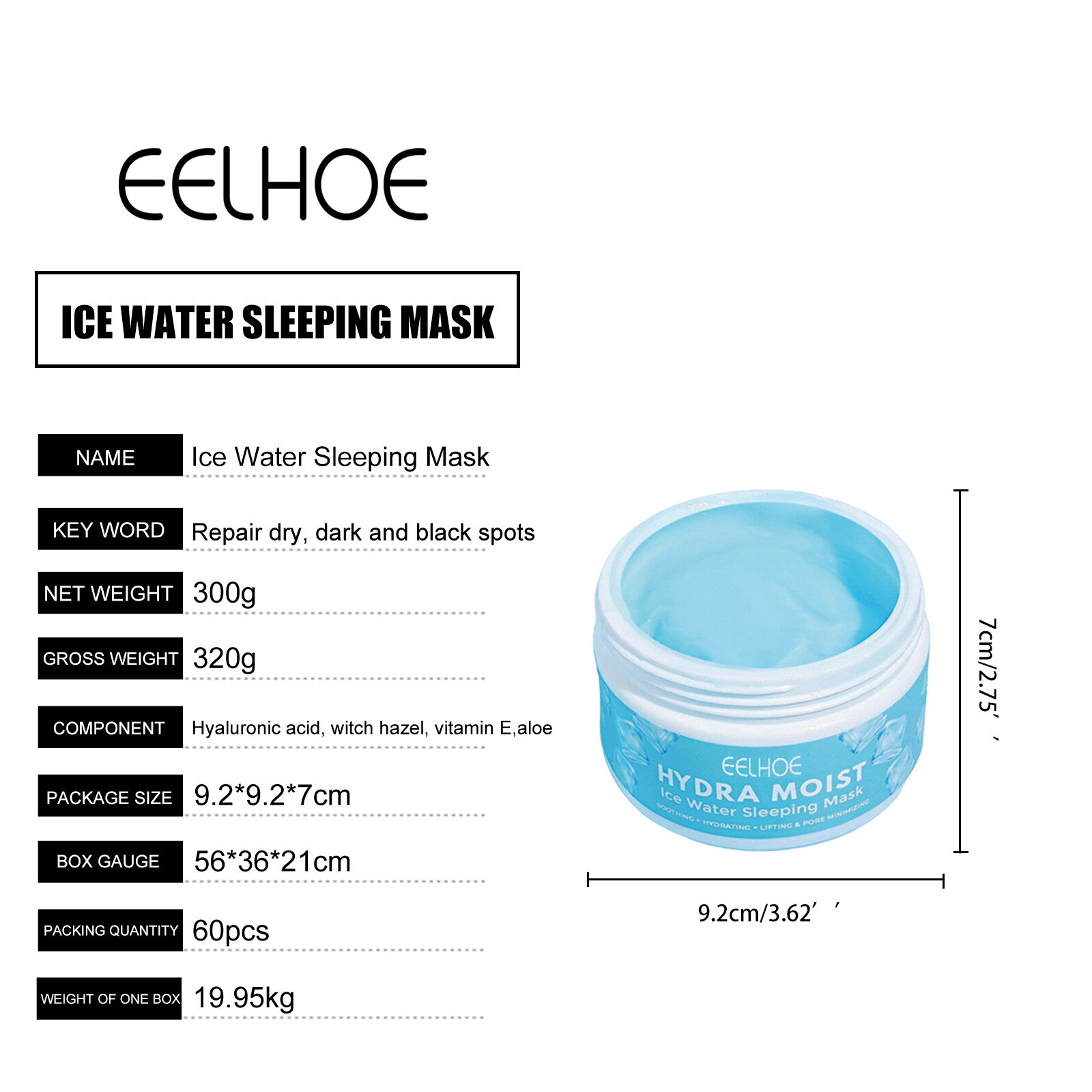 Eelhoe Hydra Moist Ice Water Sleeping Mask Whitening Moisture Mask Night Repair Dry Dark Spots First Aid Facial Mask Face Shrink Pores Lifting Firming Sleeping Hydrating Mask Skin Care Products(300g)