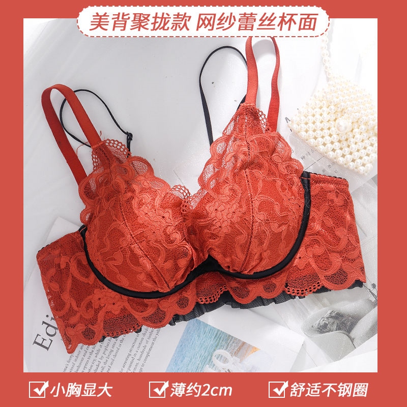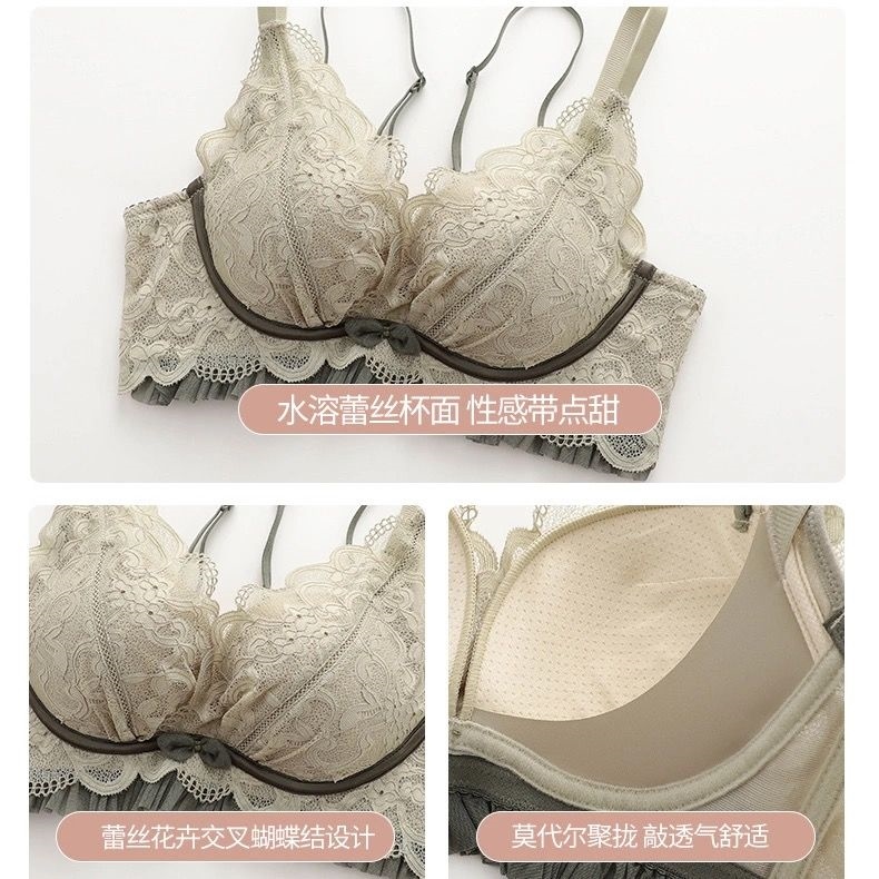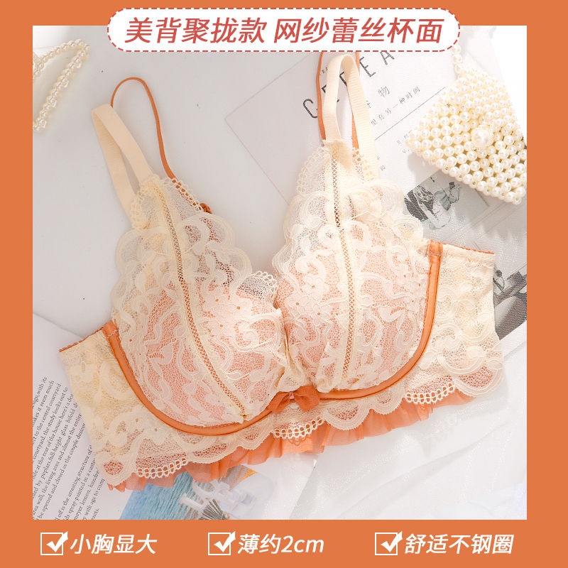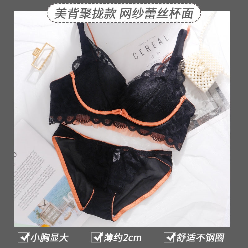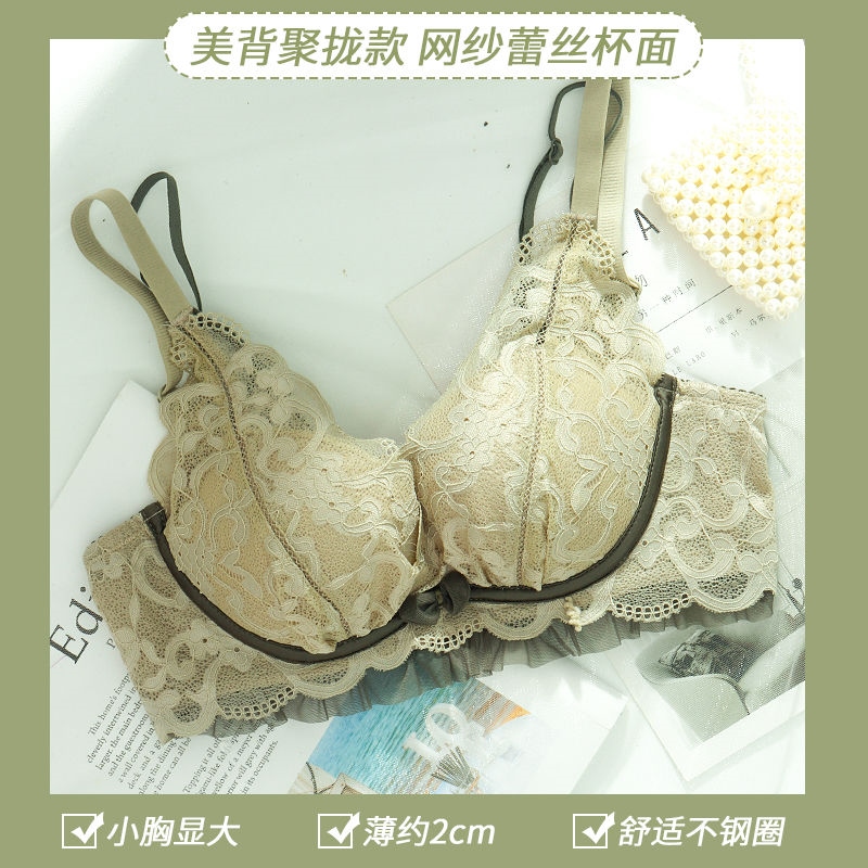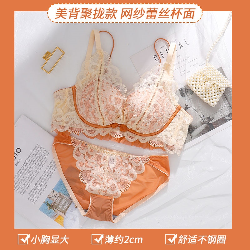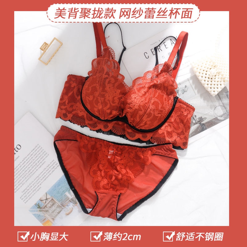Underwear female lace beautiful back small chest special gathering anti-sagging high-grade bra cover suit Panties one set
