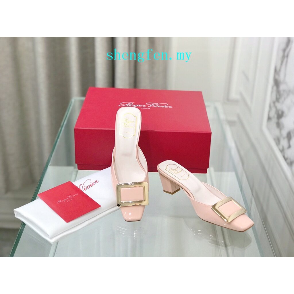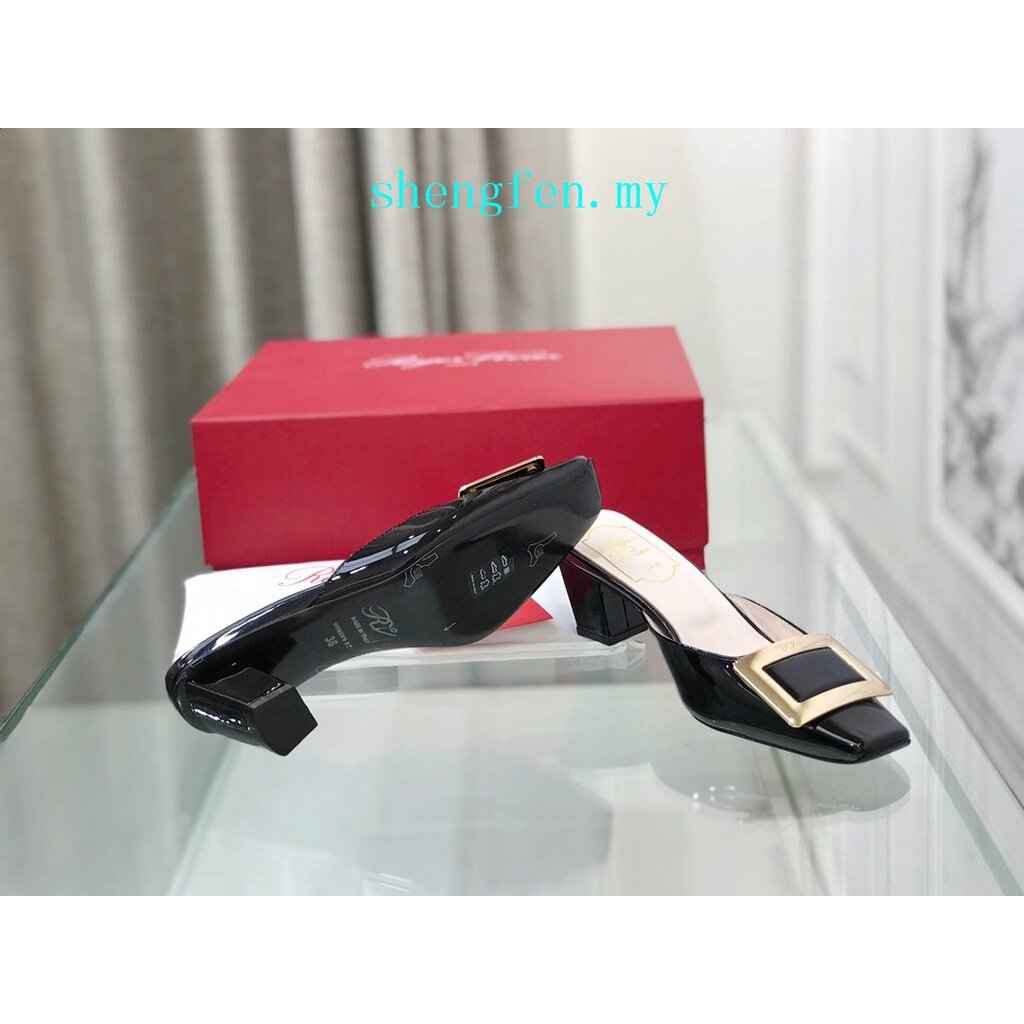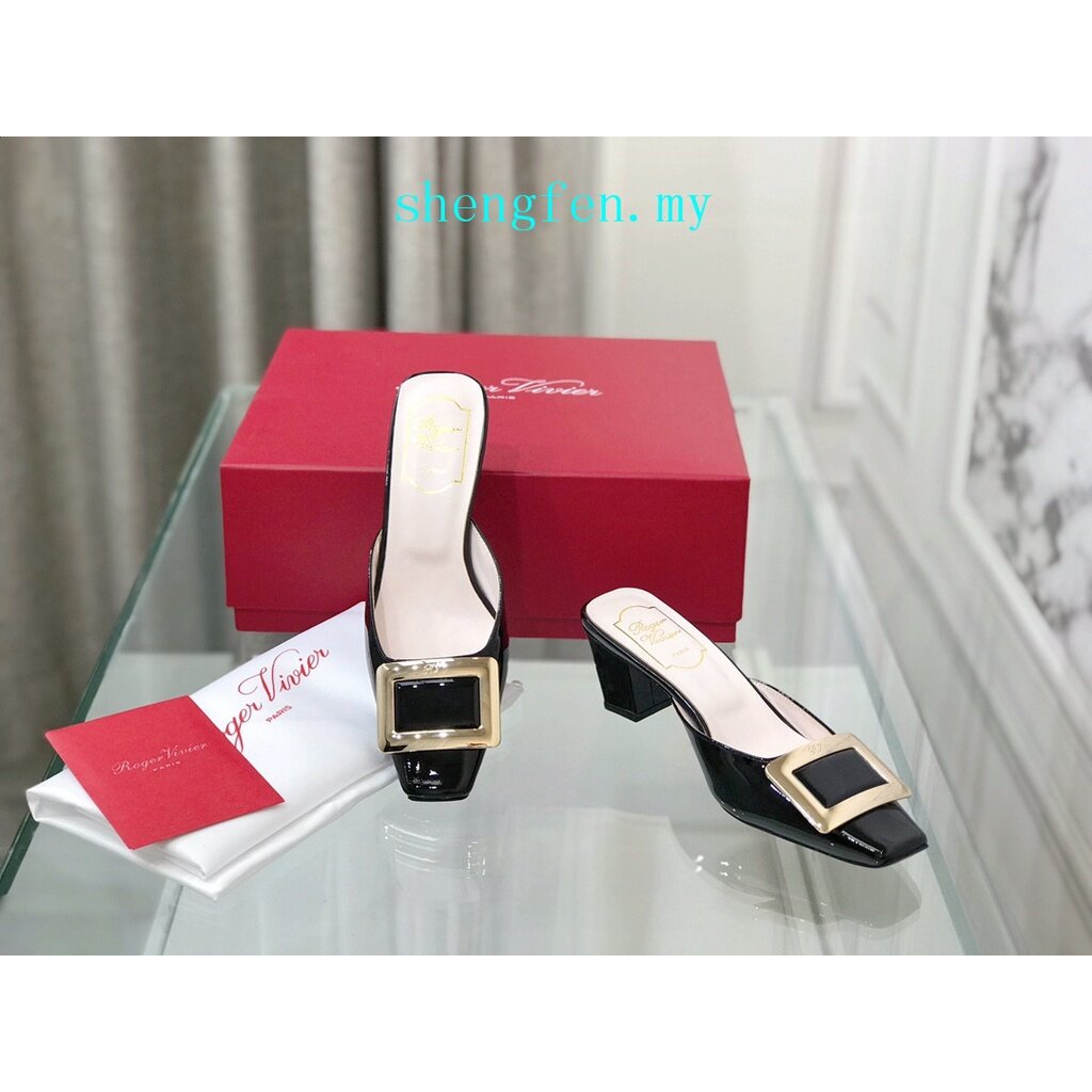 Roger vivierˉSquare Buckle Half Drag Muller Middle Heel Casual Women's Shoes (Heel Height: 4.5cm)