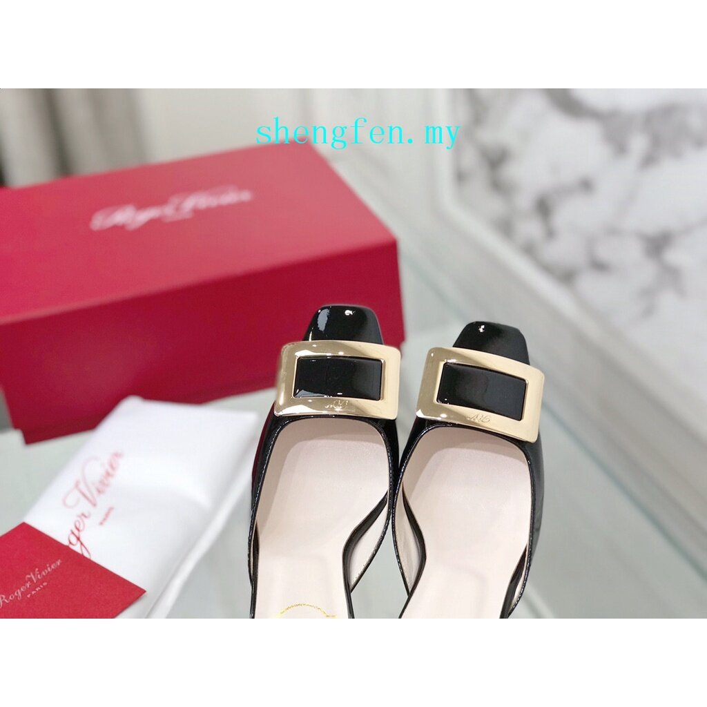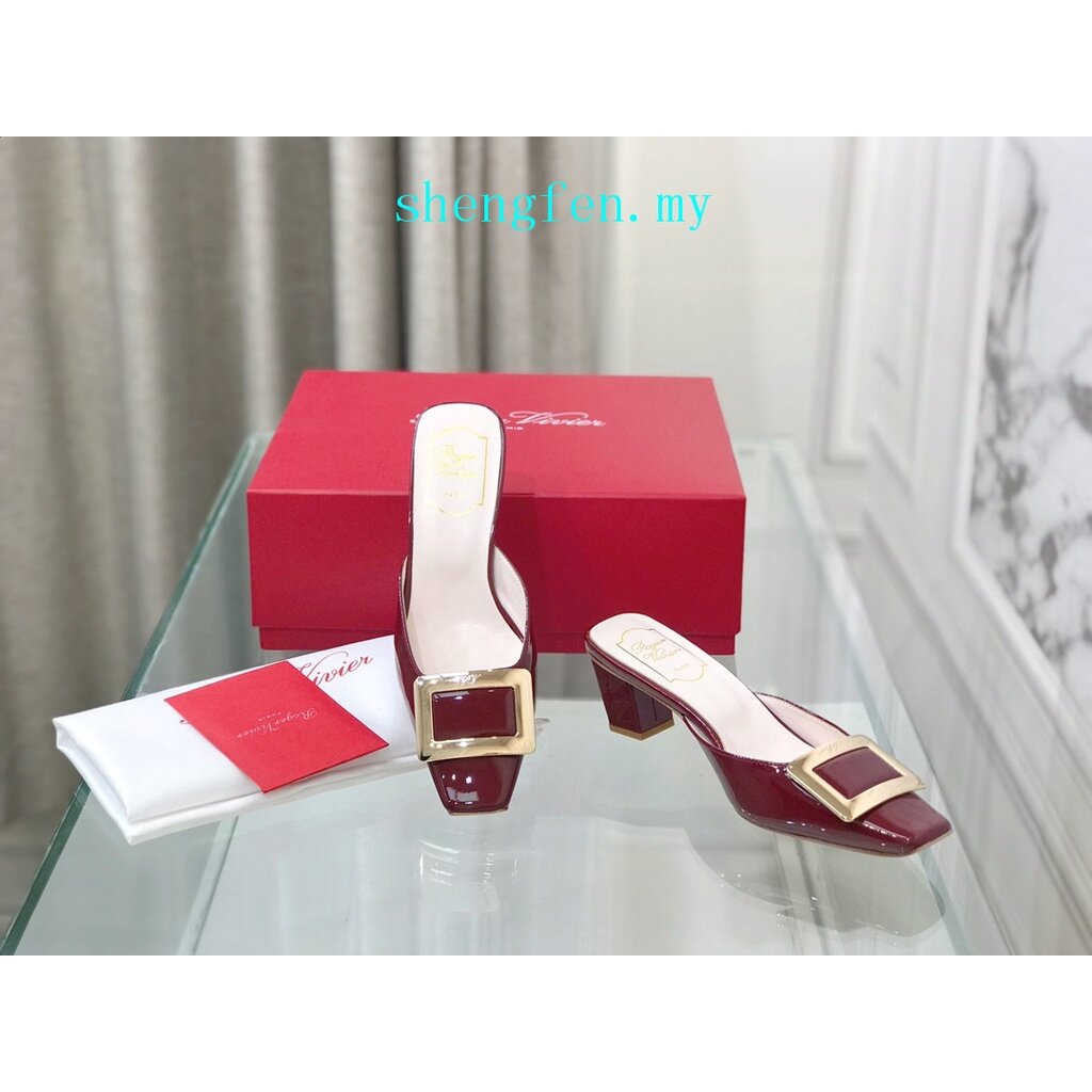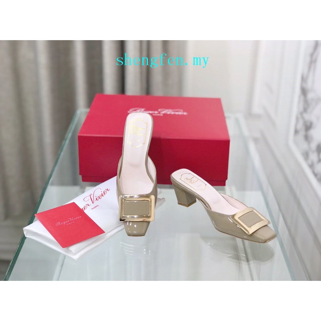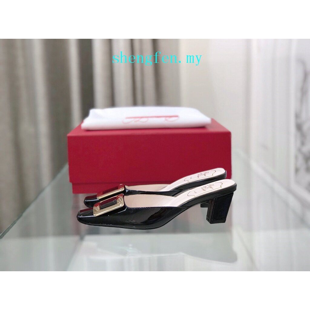 Roger vivierˉSquare Buckle Half Drag Muller Middle Heel Casual Women's Shoes (Heel Height: 4.5cm)