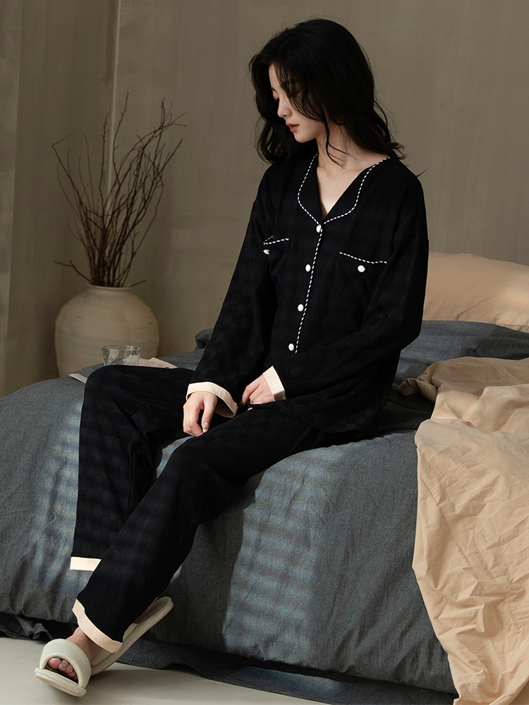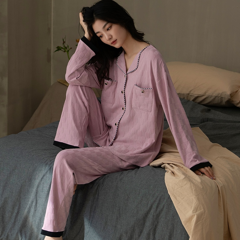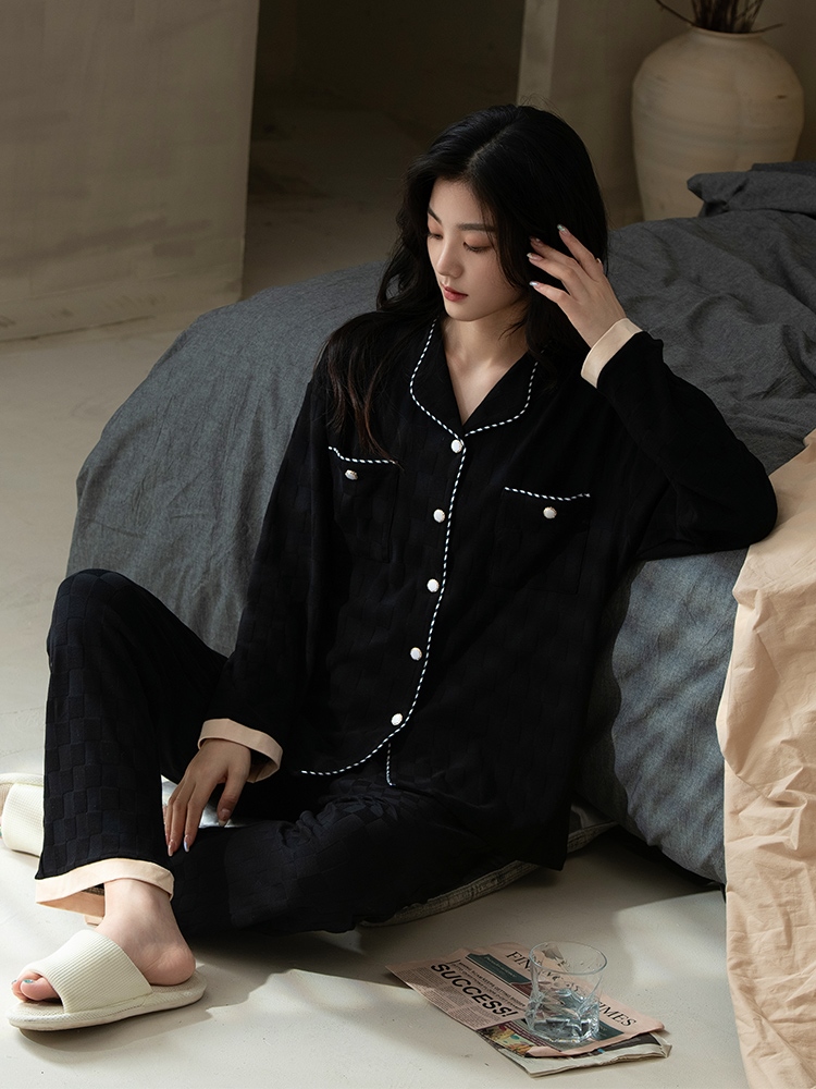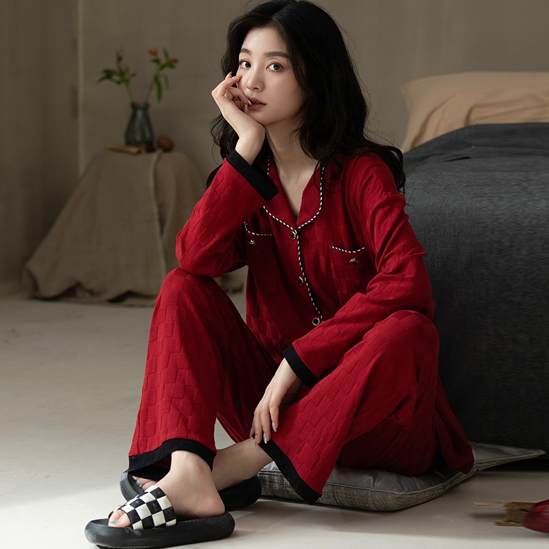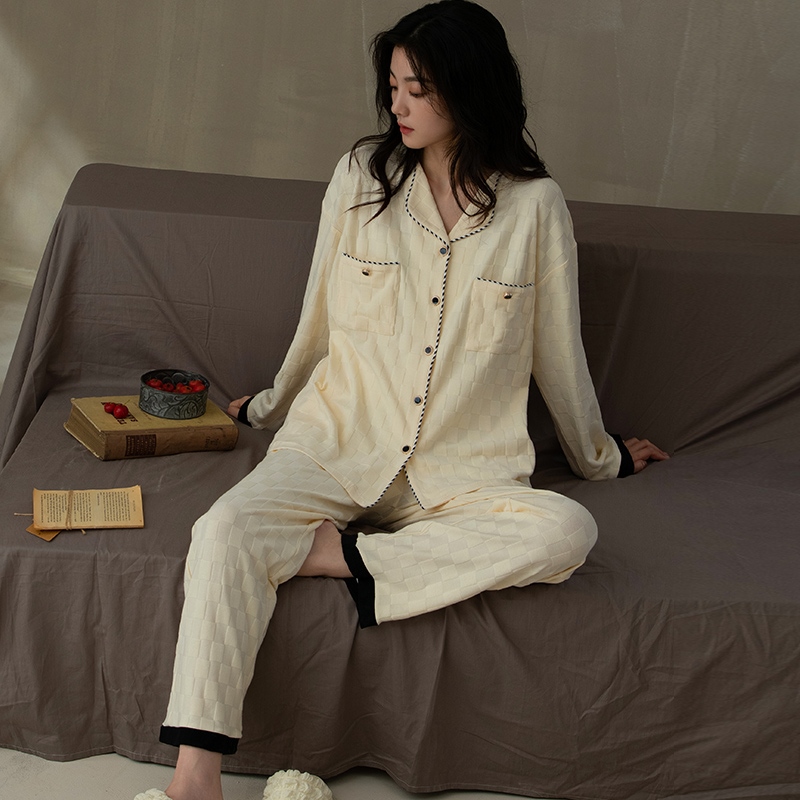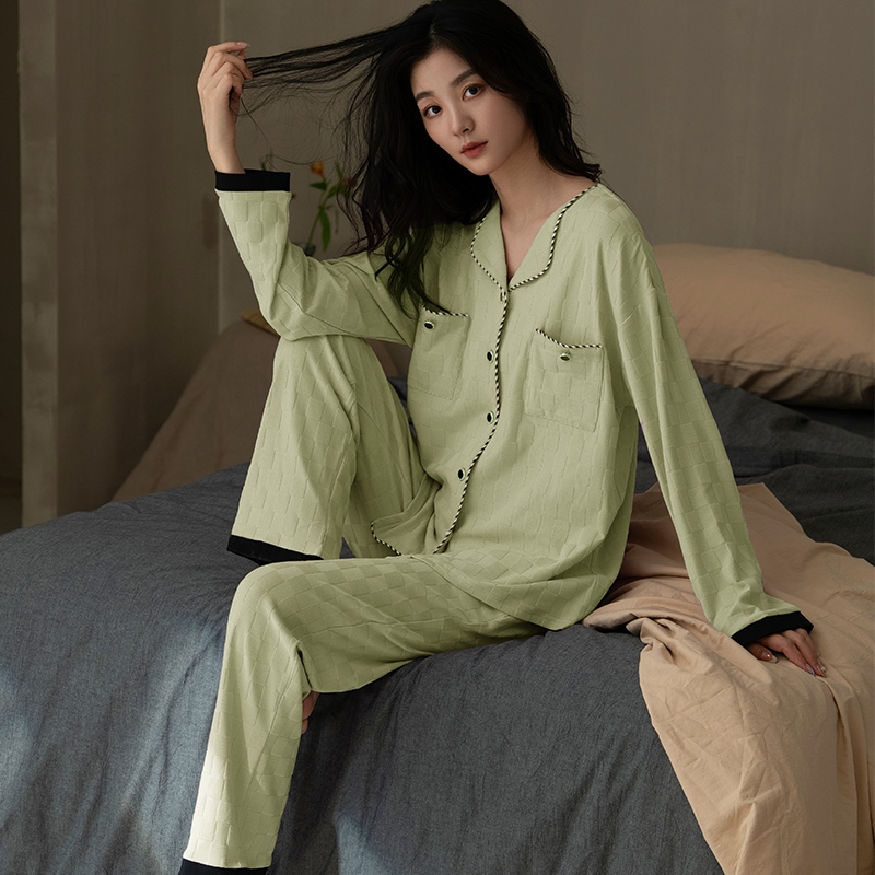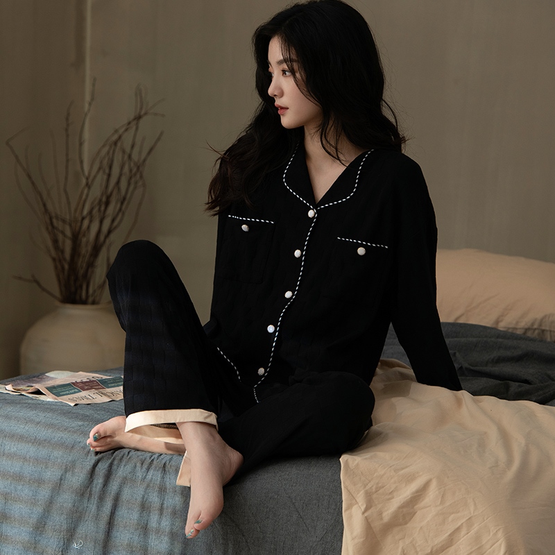 Ladies underwear Women's pajamas spring and autumn pure cotton long-sleeved simple high-end suit cardigan lapel can be worn outside home clothes autumn and winter