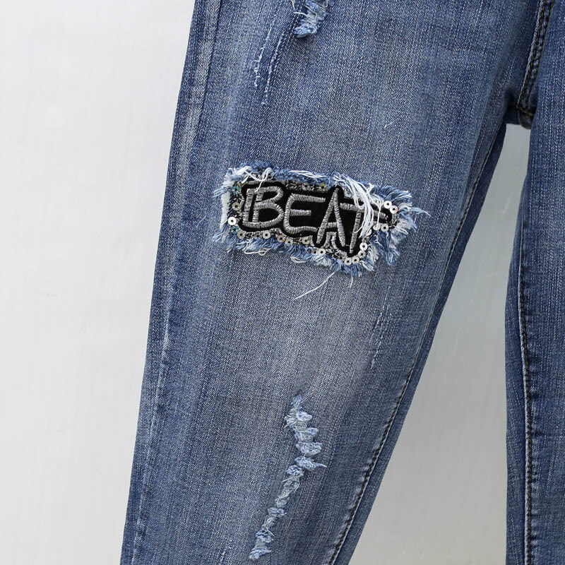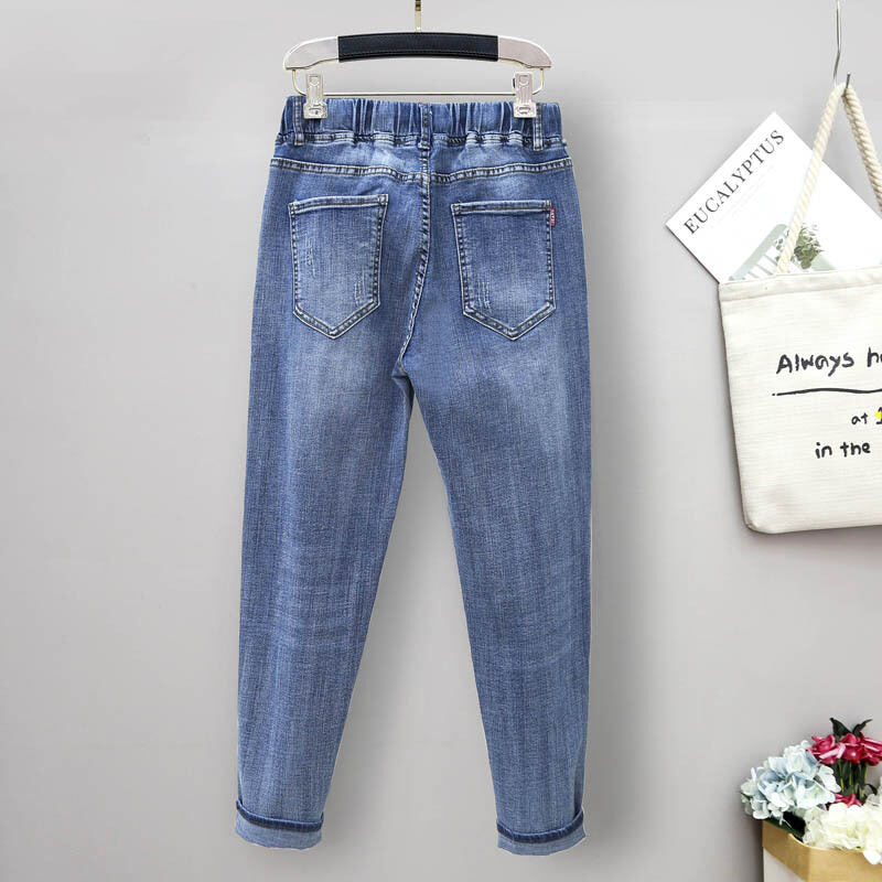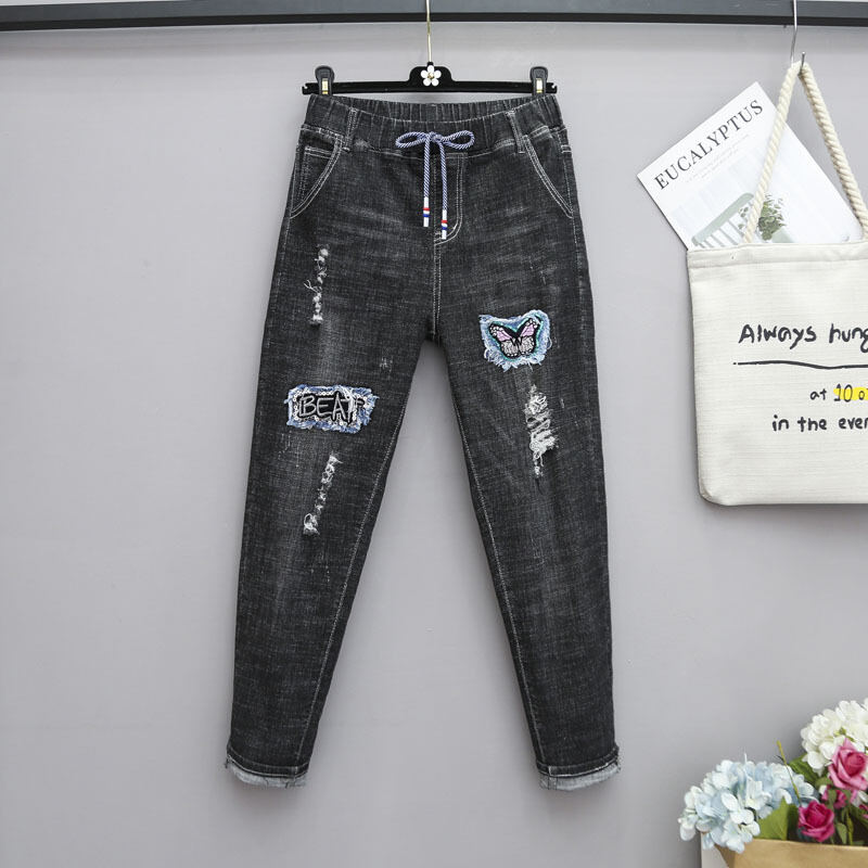Guangzhou Xintang Large Size Ripped Jeans Women's 2023 Spring and Autumn New Plus Size Ladies plus Size Women's Clothing Cotton Harem Pants