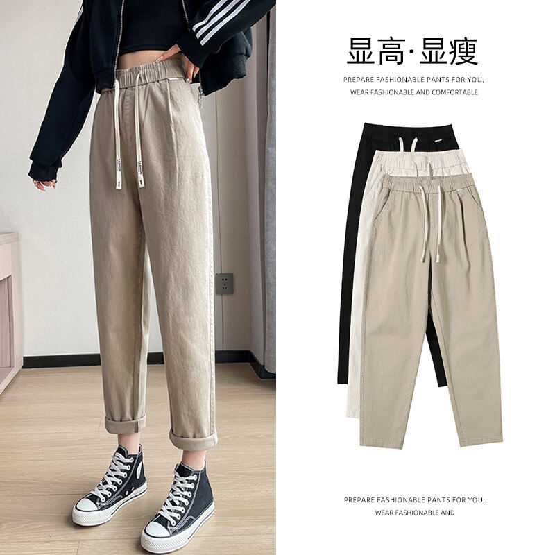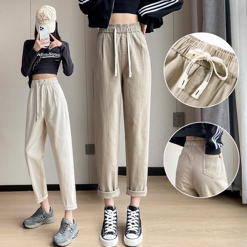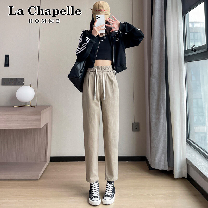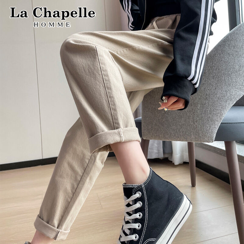La Chabell Loose Harem Jeans Women's 2023 Spring and Autumn Khaki High Waist Pure Cotton Casual Raddish Dad Jeans