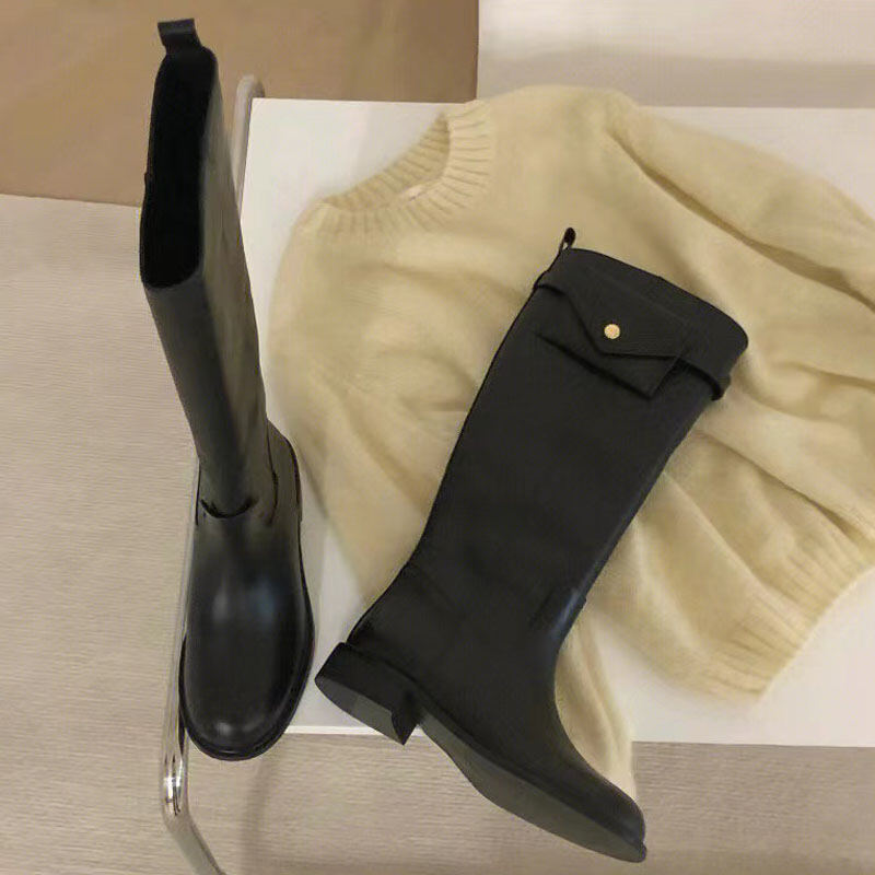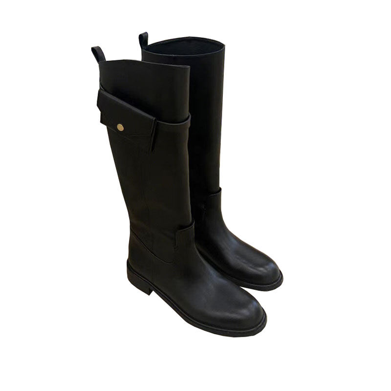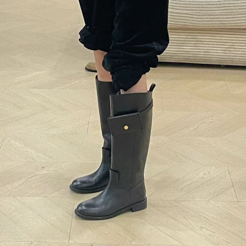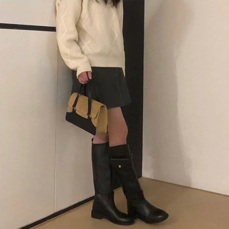 Howus Small Golden Button Bag Long Boots Female Korean Style Leather High-Top Knight Boots Versatile Slimming below the Knee Fashion Boots