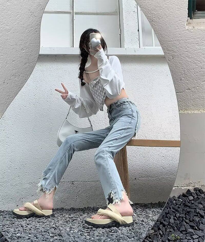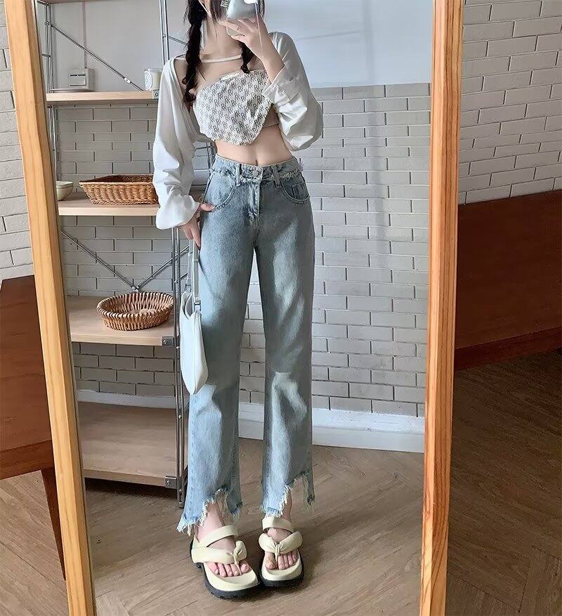 High-Looking Fashion Irregular Women's Slim Casual Pants 2023 Spring and Autumn Western Style Matching Small Denim Bell-Bottom Pants
