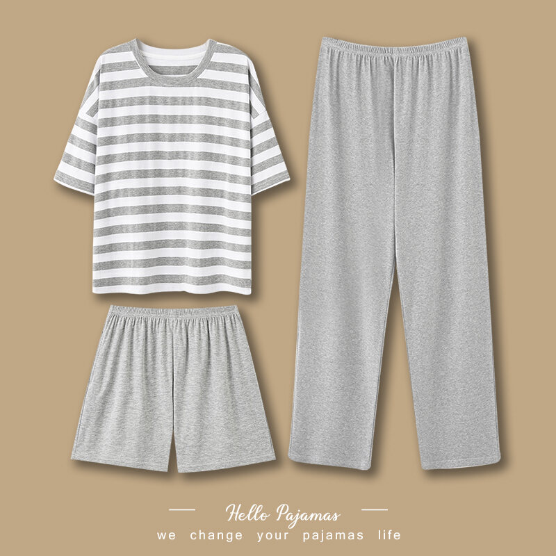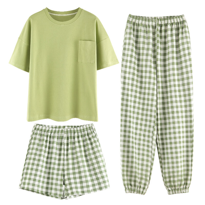 Langsha Short-Sleeved Trousers Pajamas Women's Summer Pure Cotton Three-Piece Set 2023 New Women's Large Size Outerwear Homewear