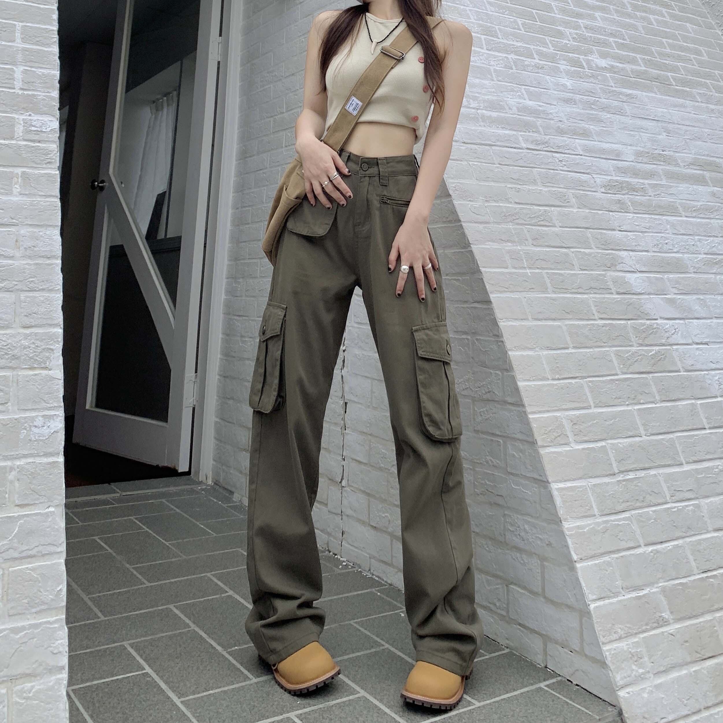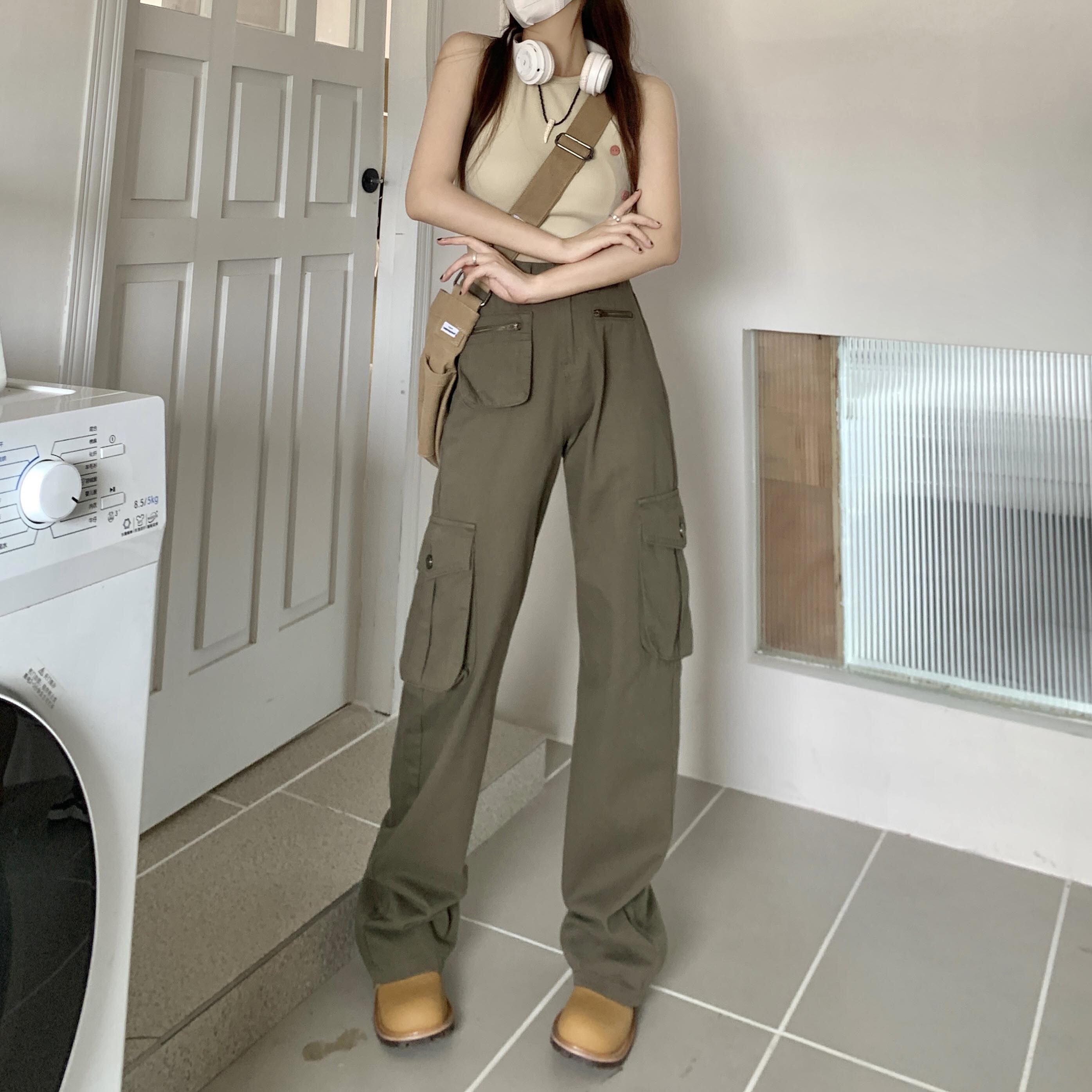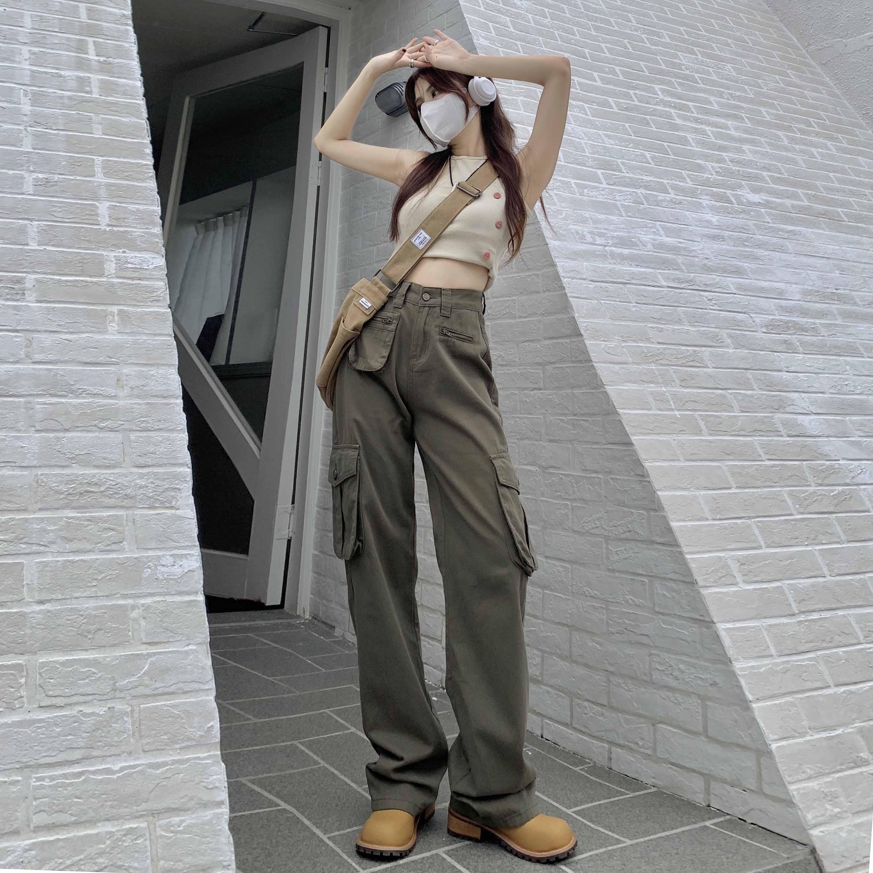 Shanji Thin Casual Pants 2022 Slim Looking High Waist Loose Stretch All-Matching Solid Color Shorts Tooling Style Straight-Leg Pants