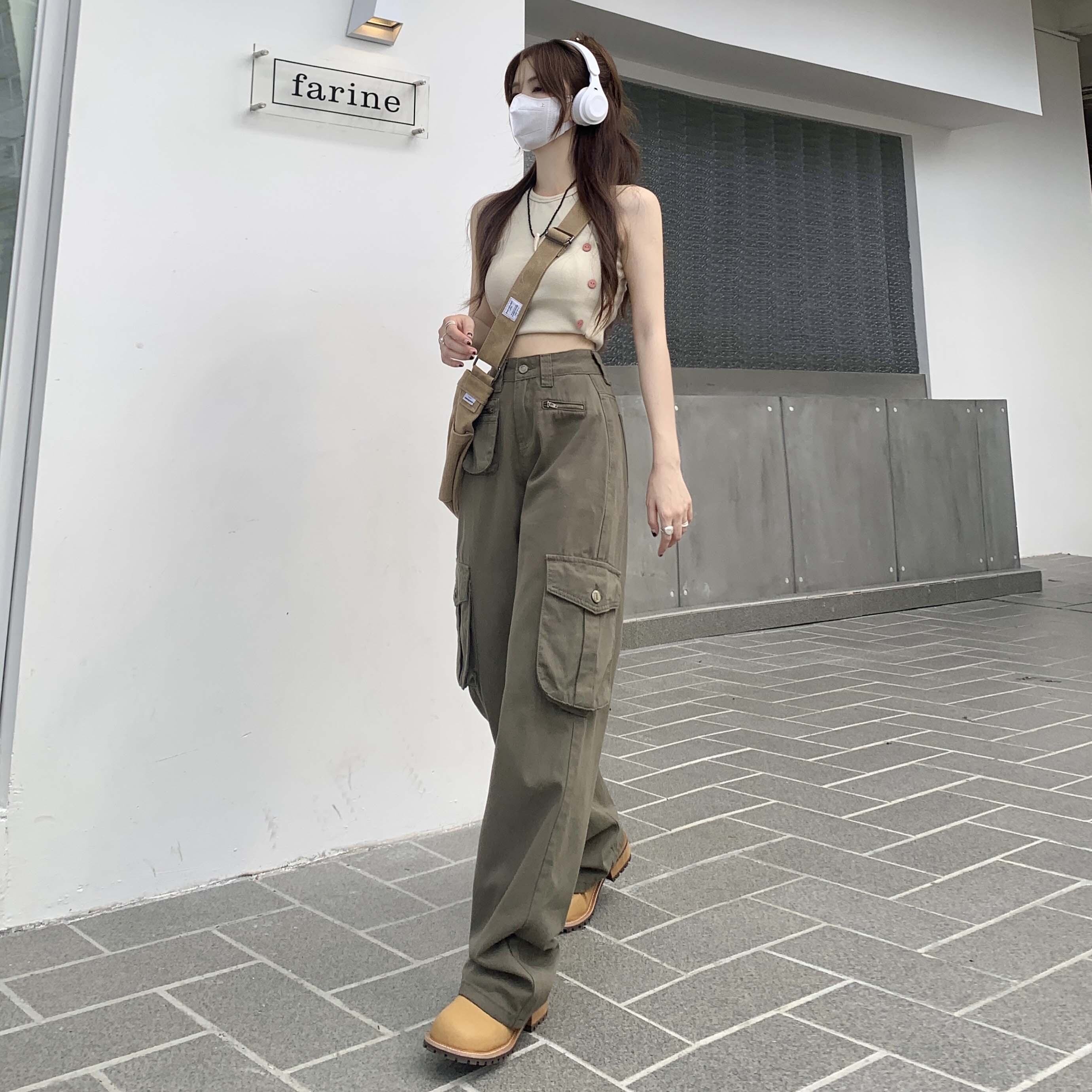 American Street Overalls Women's Summer Loose Straight Designed Hot Girl High Street Ins Casual Wide Leg Denim Trousers