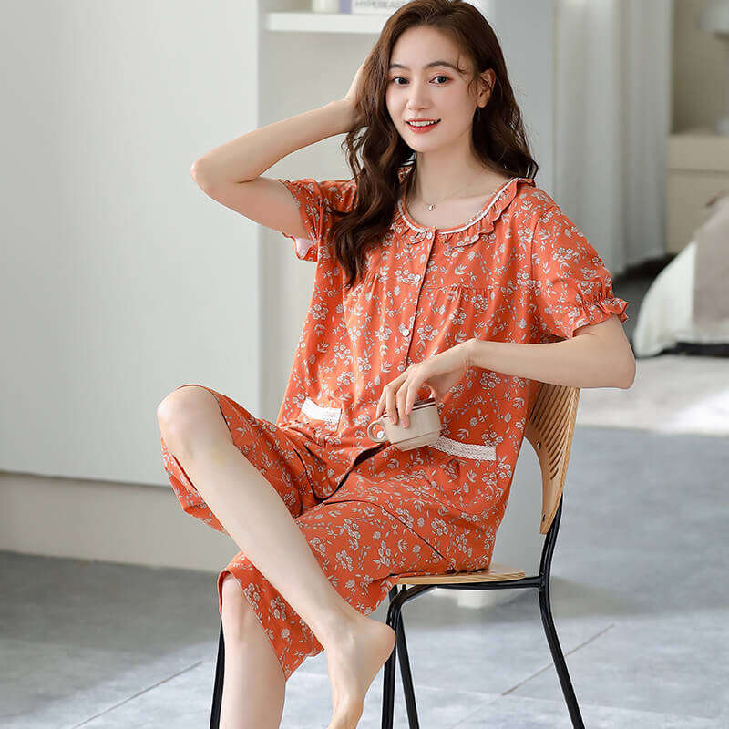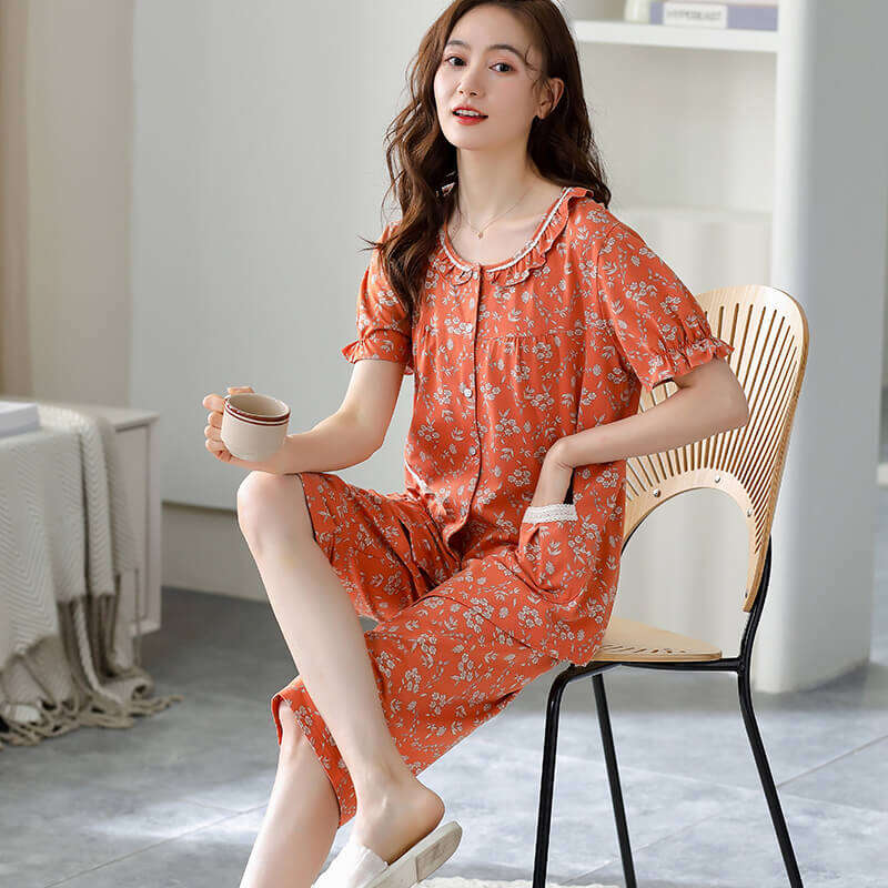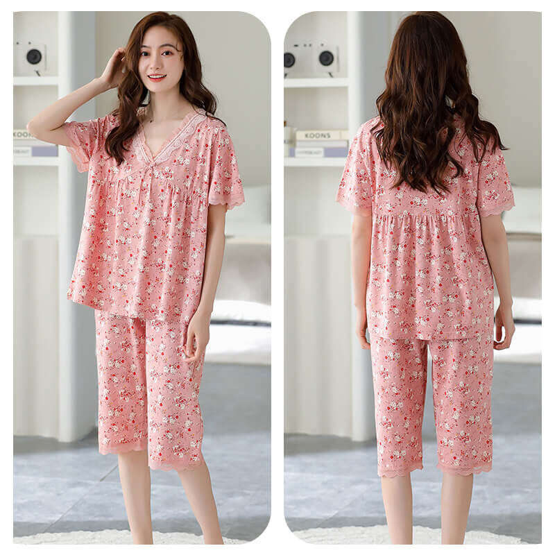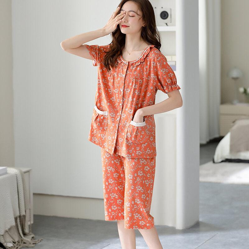 Modal Pajamas Women's Summer Short-Sleeved Capri Pants 2023 New Arrival Printed Homewear Loose Large Size Suit