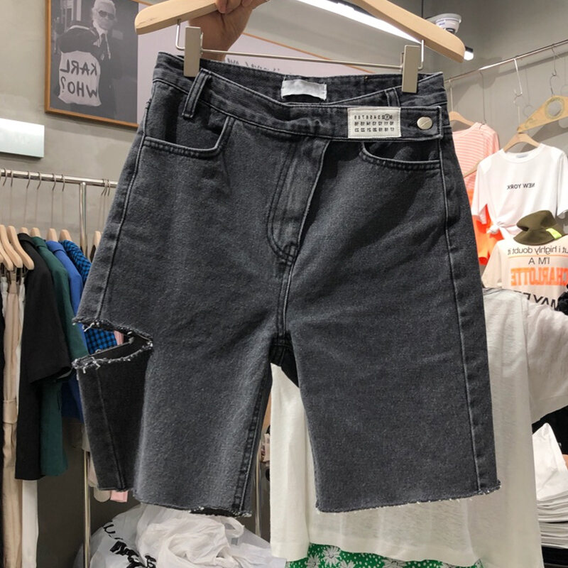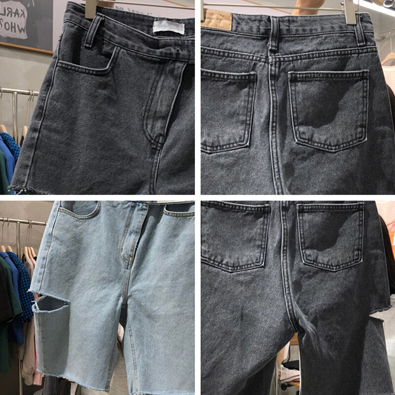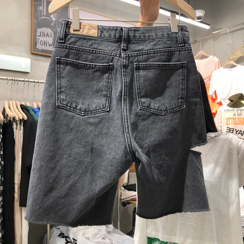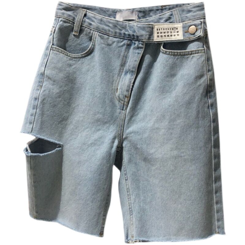 Summer Fat Girl Large Size Ripped Straight Denim Shorts Women's Thin Slimming Wide Leg Pants High Waist Fifth Pants
