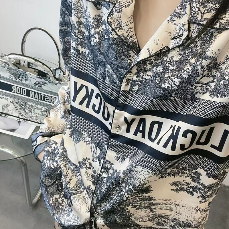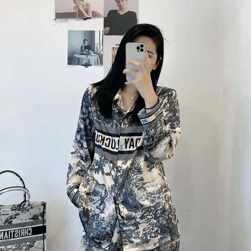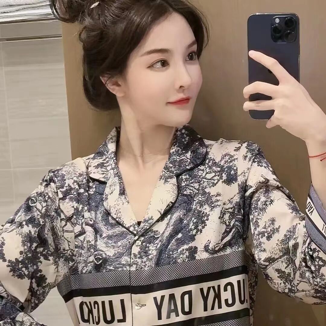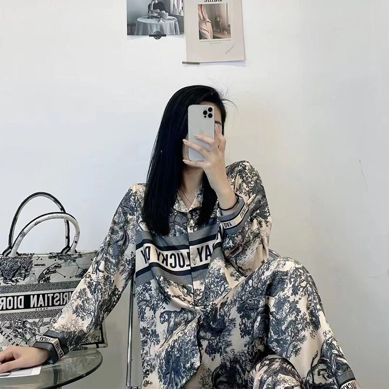 2023 New Streamer Soft Silk Pajamas for Women High Grade Landscape Ink Big Brand Light Luxury Silk Satin Surface Ladies' Homewear