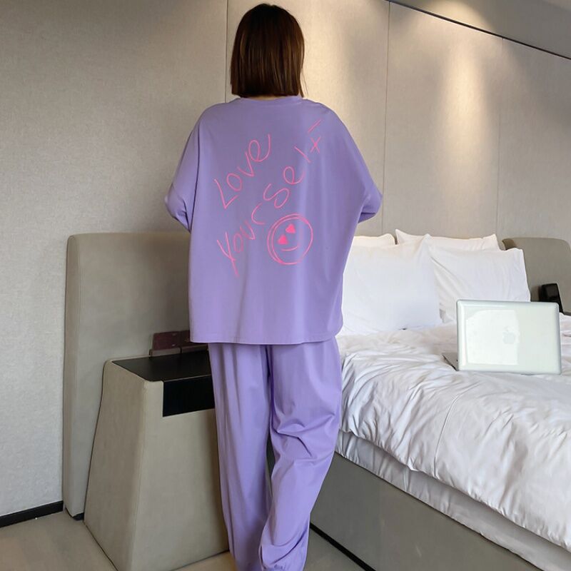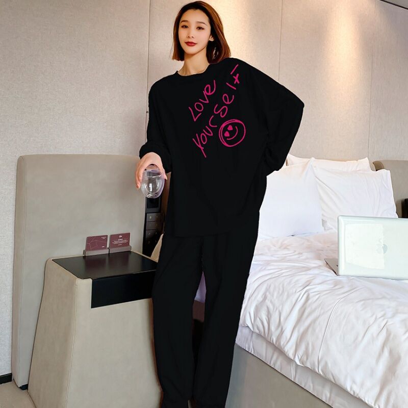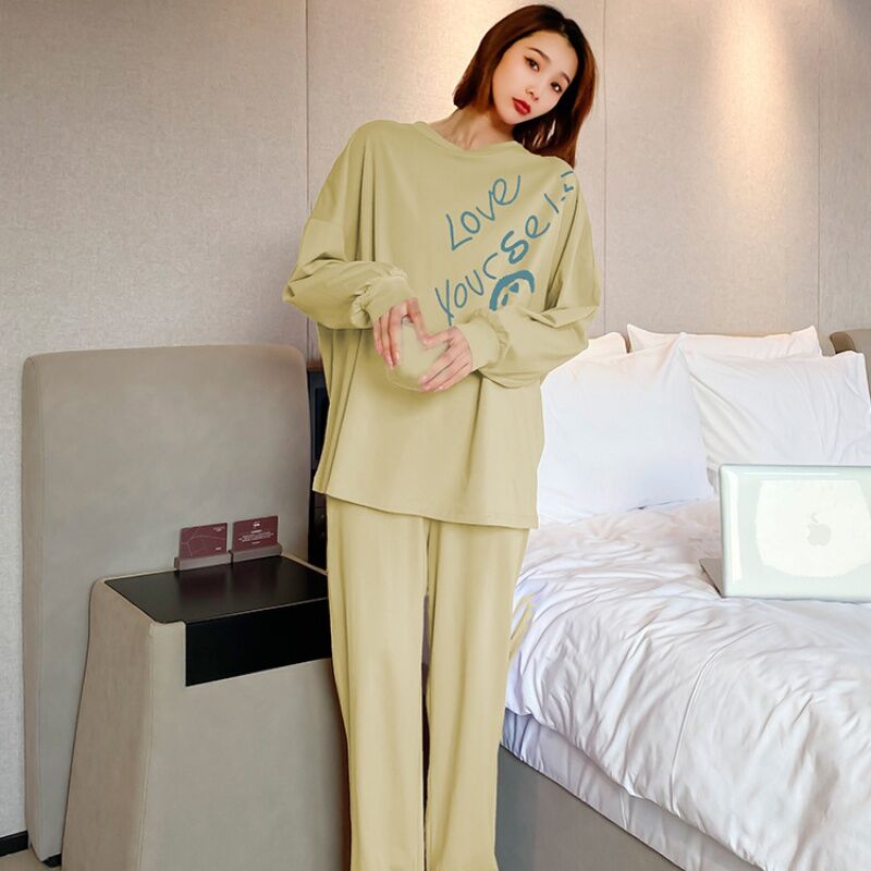 2022 Spring New Large Size Pajamas Women's Printed round Neck Long-Sleeve Suit plus and Extra Size Can Be Outerwear Homewear