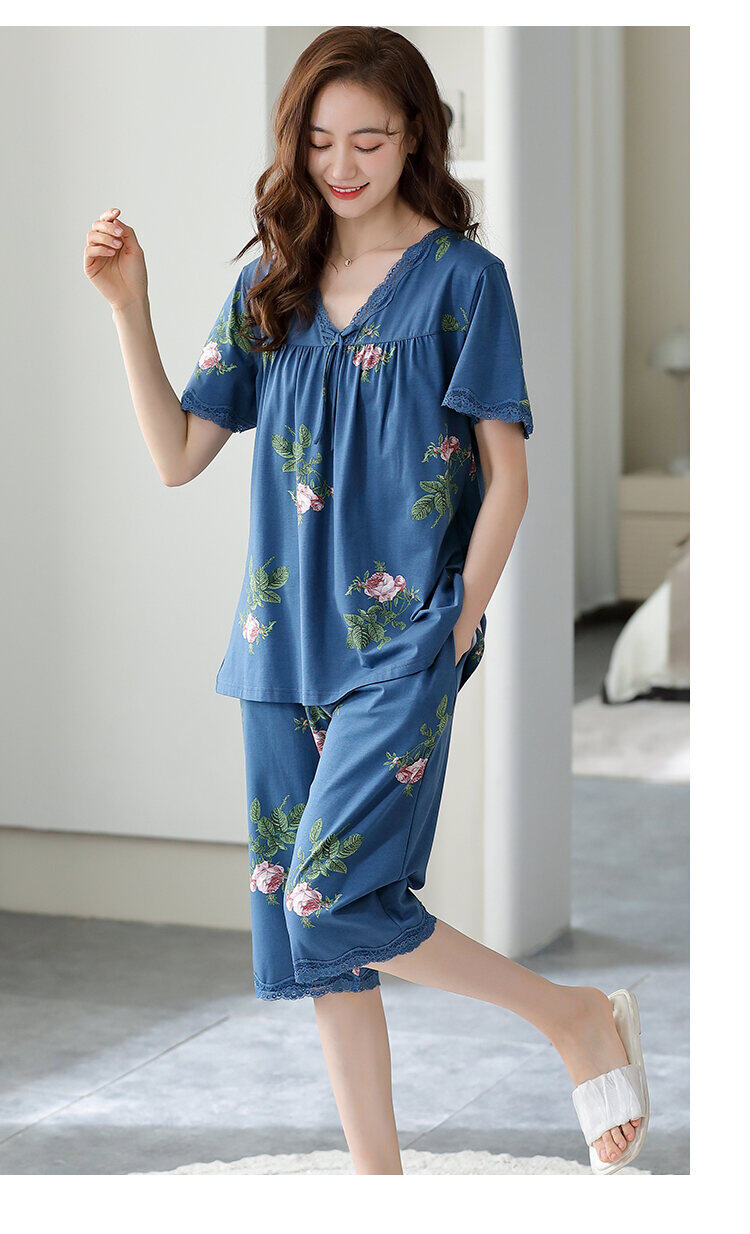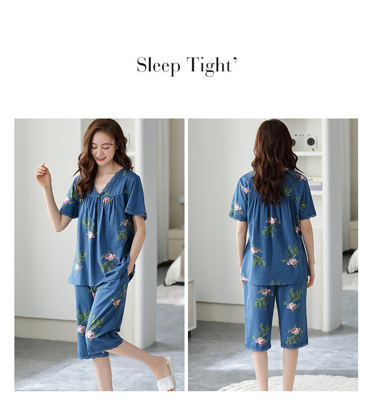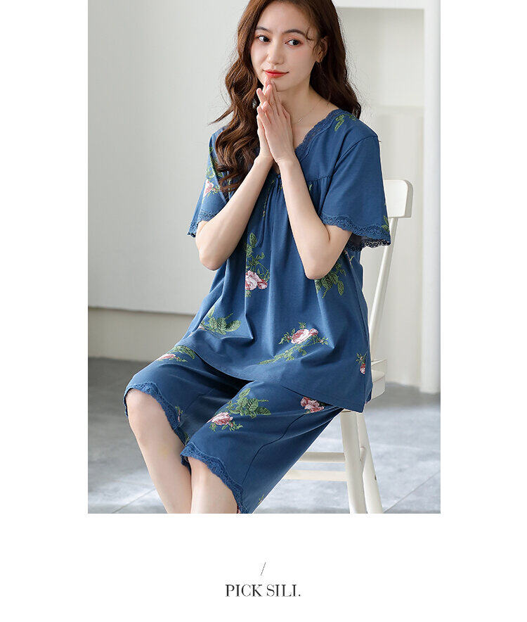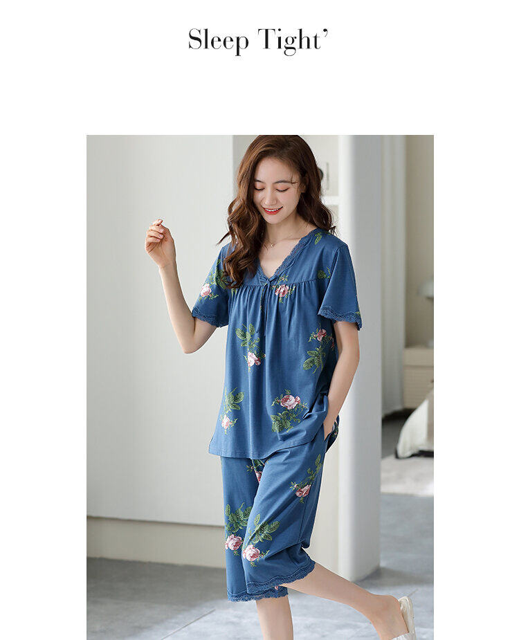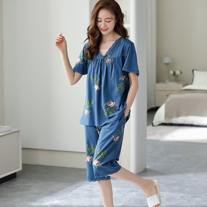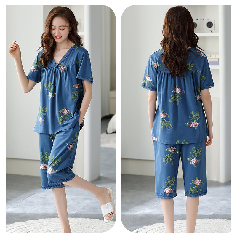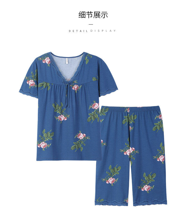 Pajamas Women's Summer Modal Short-Sleeved Cropped Pants Printed Homewear 2023 New Middle-Aged Mom Suit