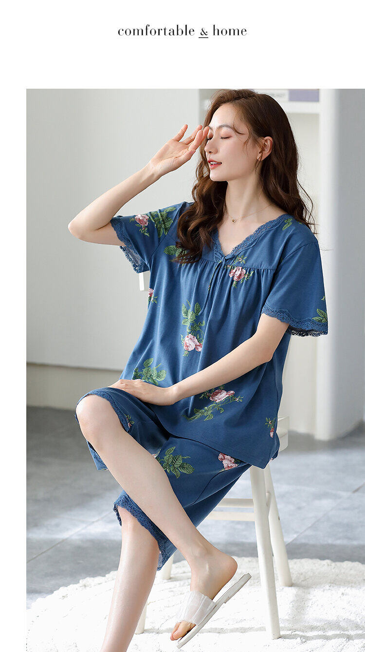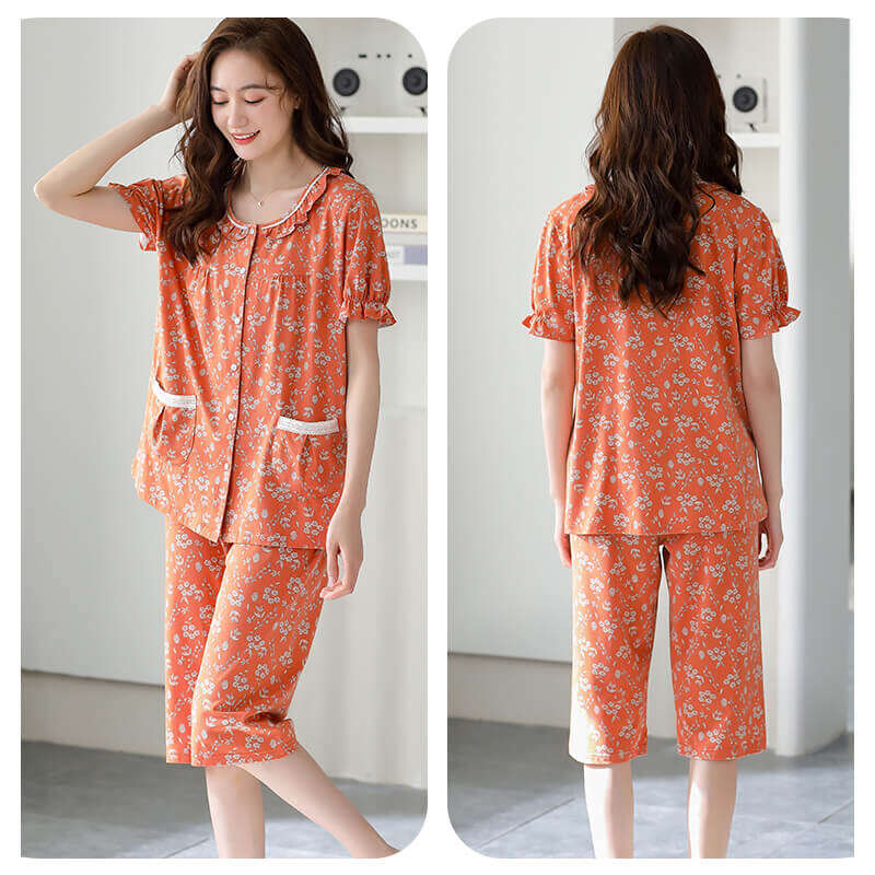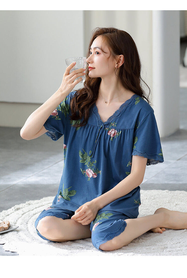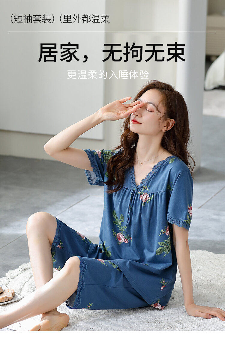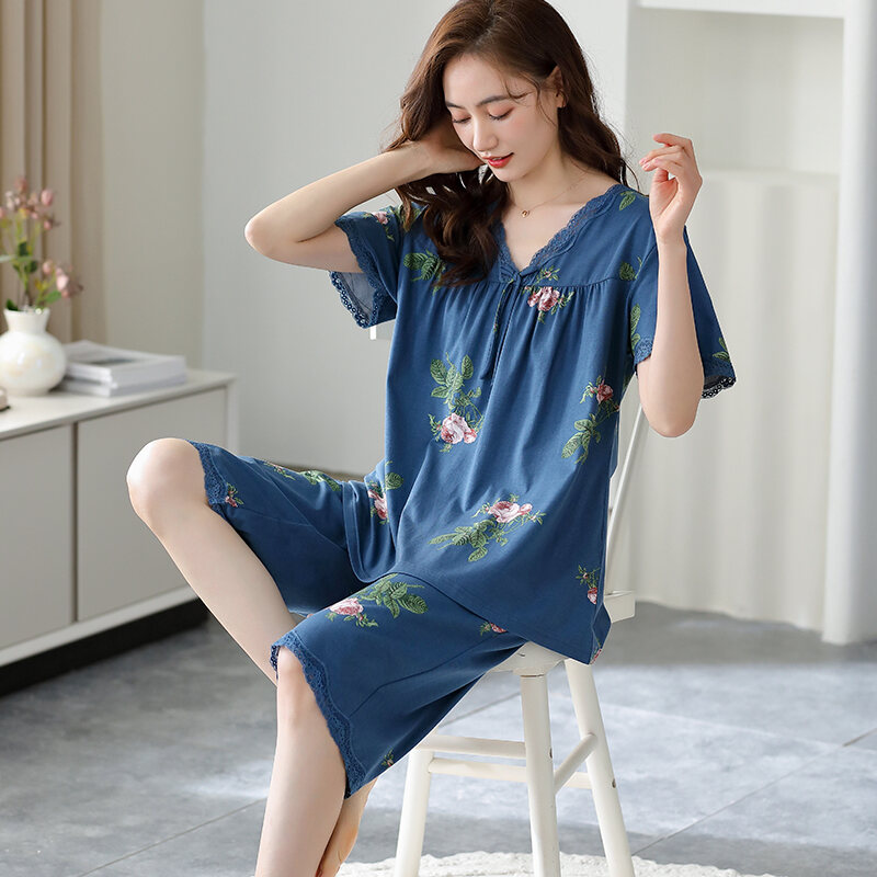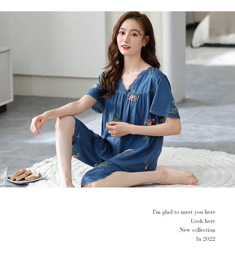 Pajamas Women's Summer Modal Short-Sleeved Cropped Pants Printed Homewear 2023 New Middle-Aged Mom Suit