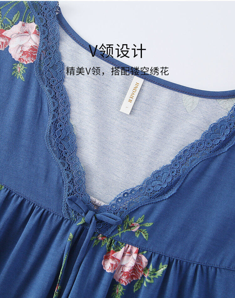 Nightdress Women's Summer 2023 New Modal Short-Sleeved Mother plus Size Pajamas Minimalist Thin Homewear