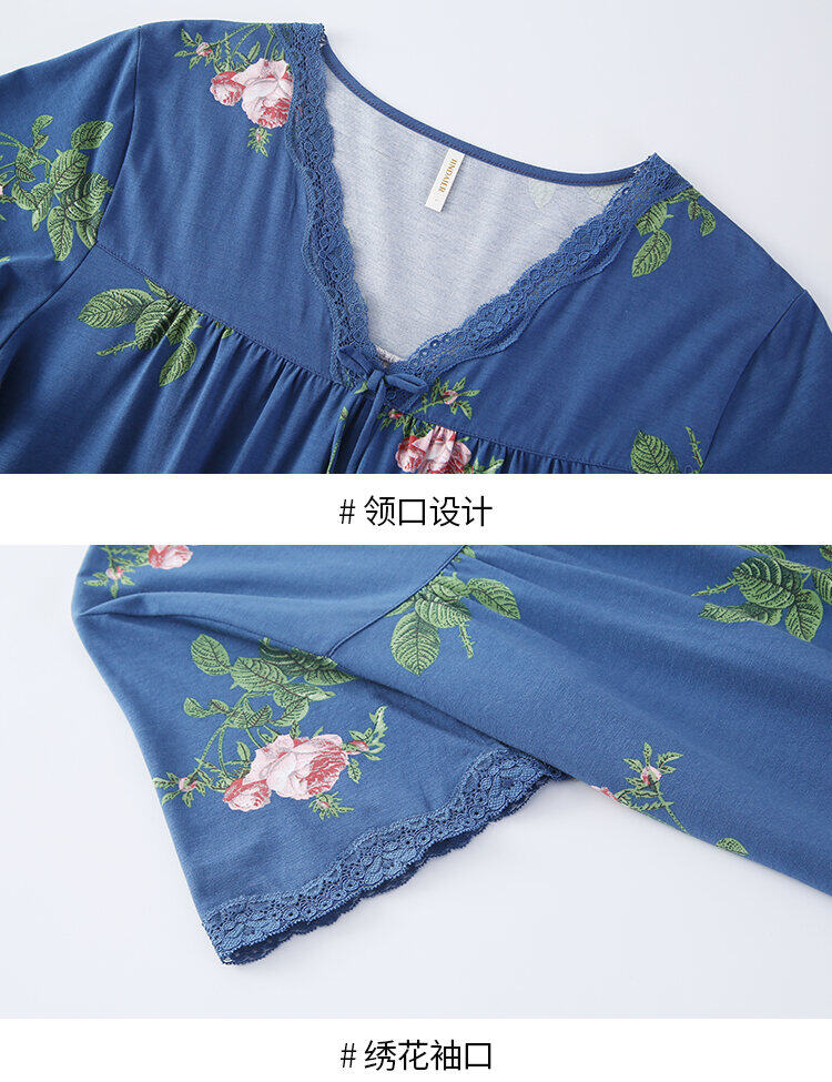 Pajamas Women's Spring and Autumn Long-Sleeved Mercerized Cotton Printing 2023 New Homewear Middle-Aged Mother Loose Outfit