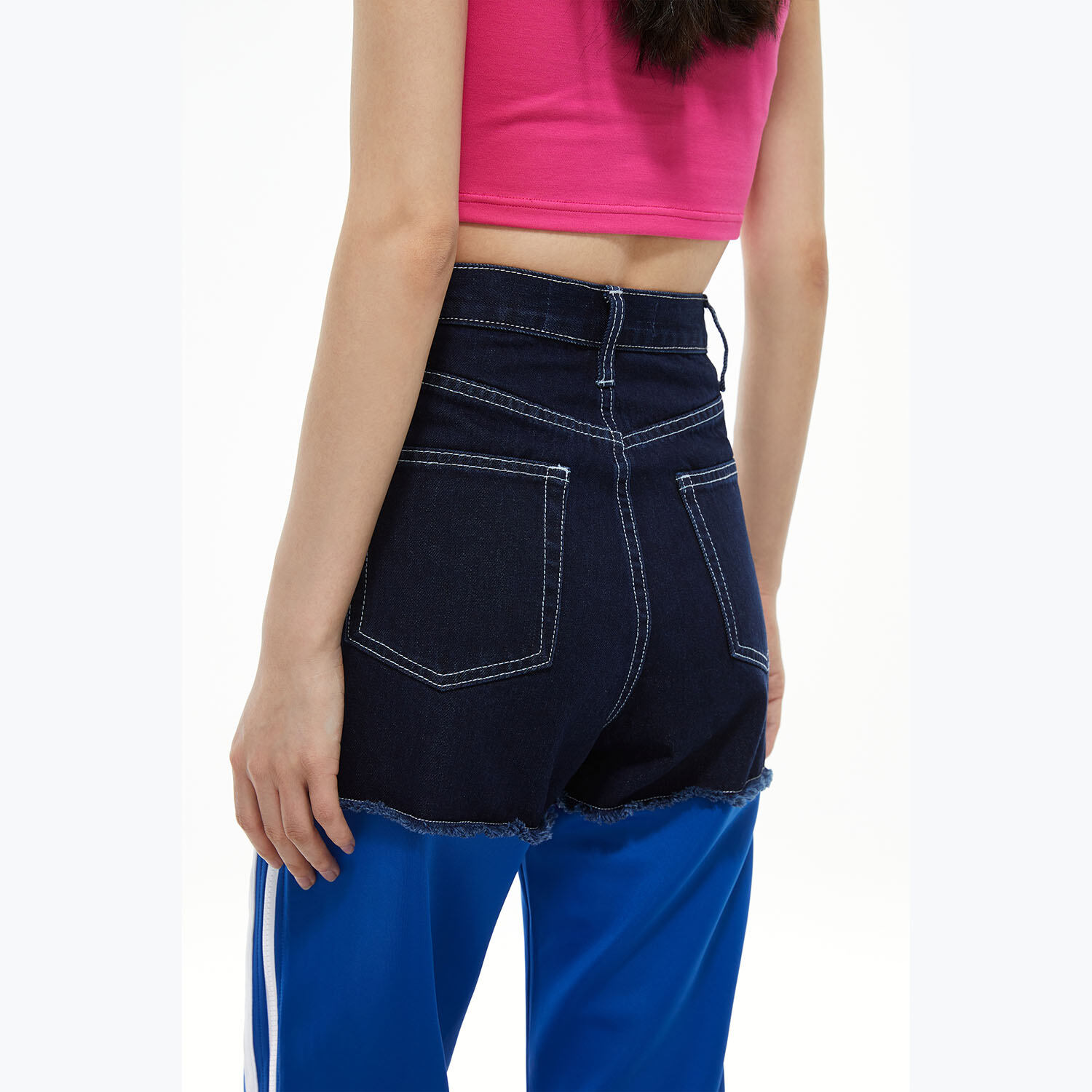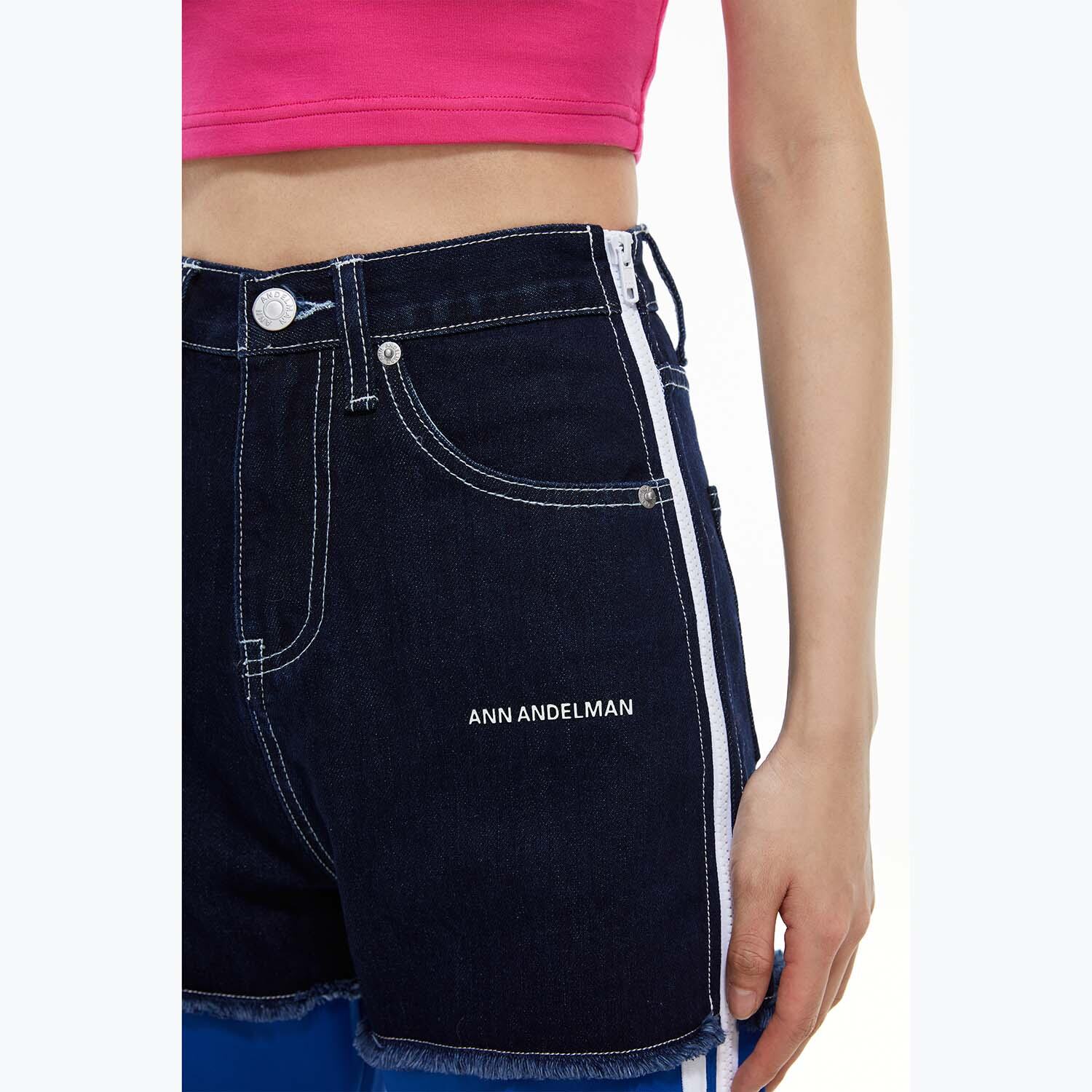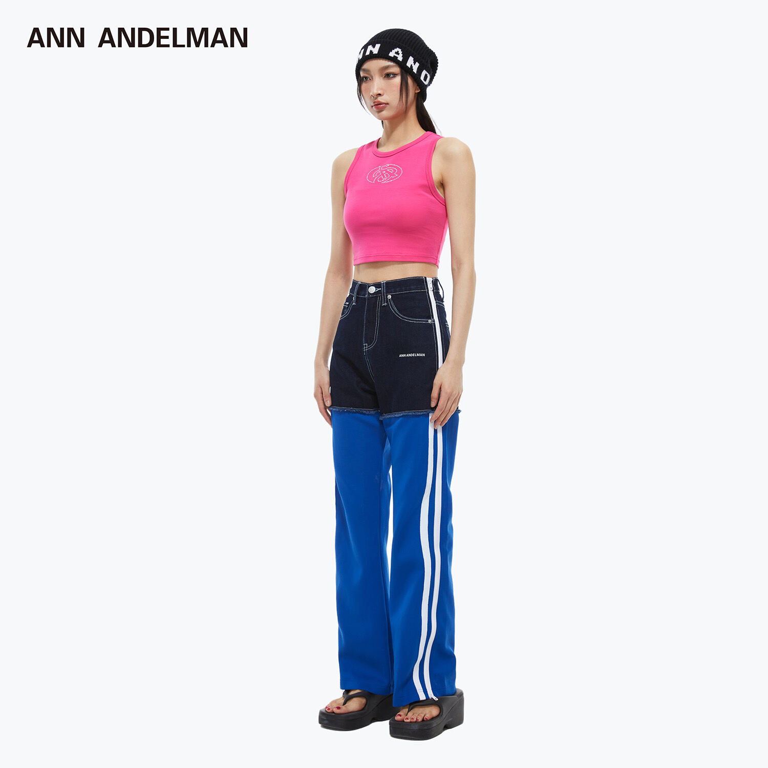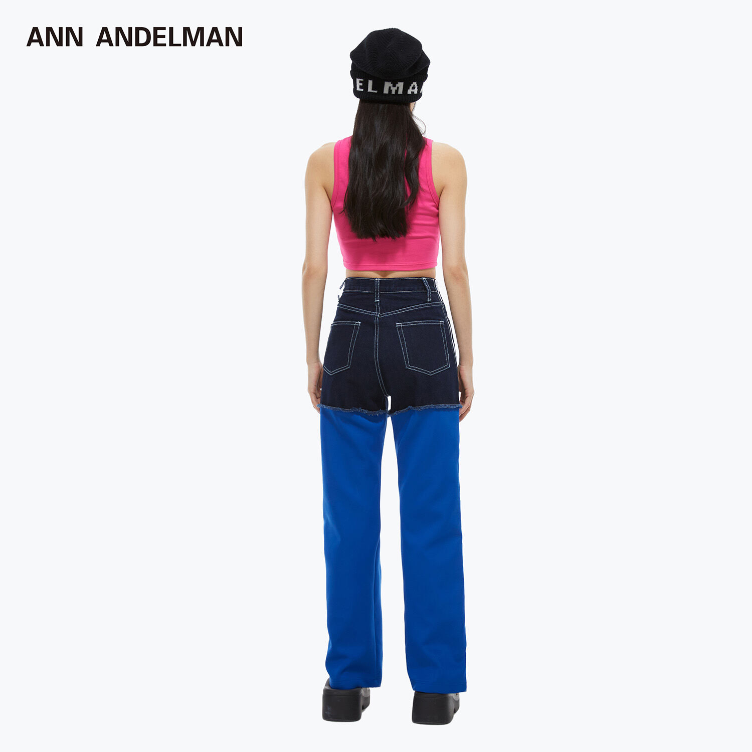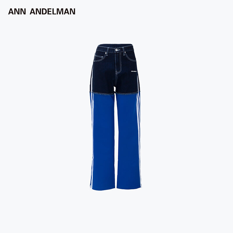 Official Direct Sale Ann Andelman Casual Pants Women's Side Zipper Two-Color Denim Stitching Straight High Waist Trousers
