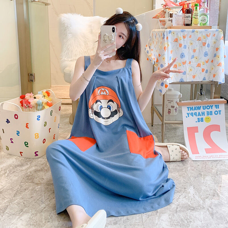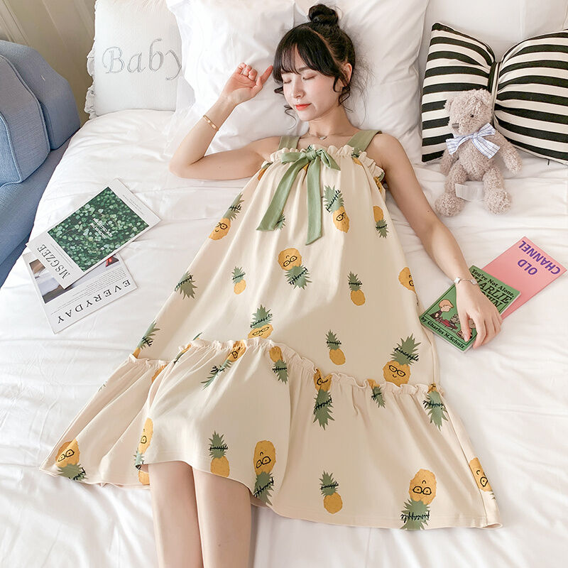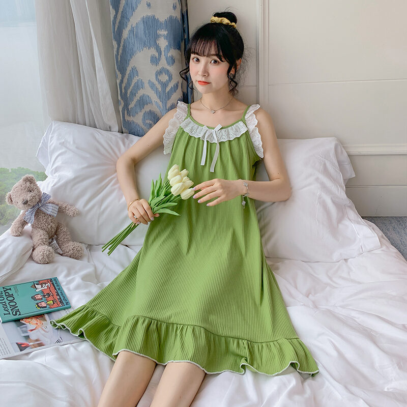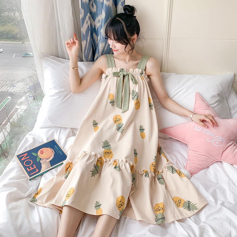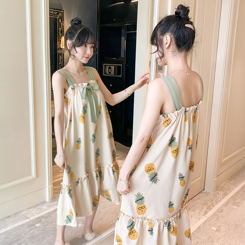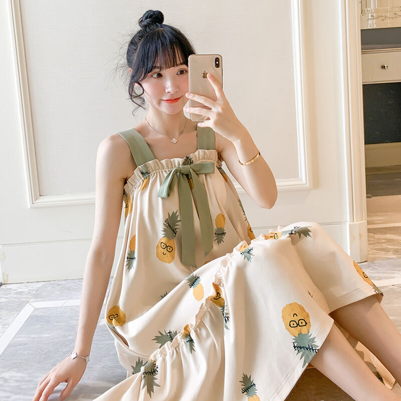 Summer Padded Nightdress Women's Pure Cottom Long Sweet Spaghetti-Strap Pajamas Spring Autumn Summer Thin Japanese Homewear