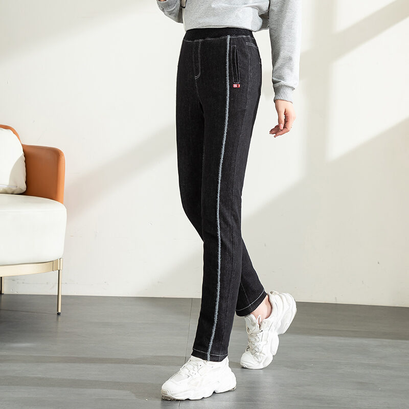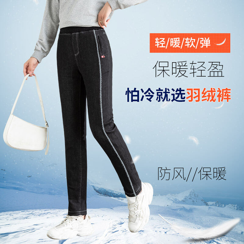 La Chabell Denim down Pants Women's Outer Wear High Waist Thickened White Duck down Winter Fashion Women's Cotton Pants Pencil Pants