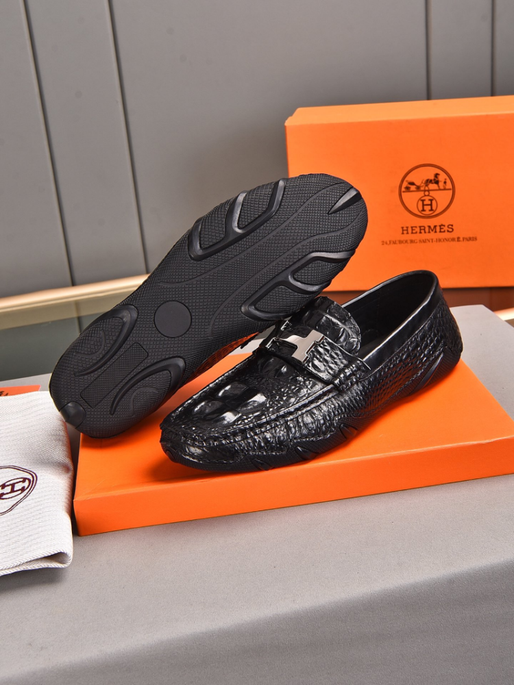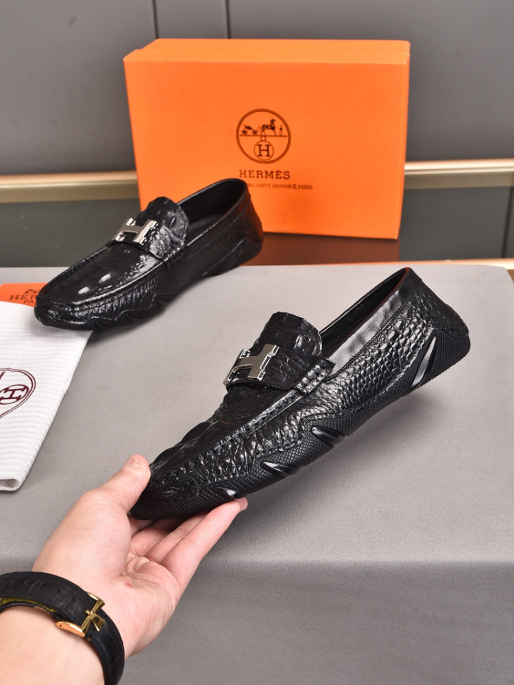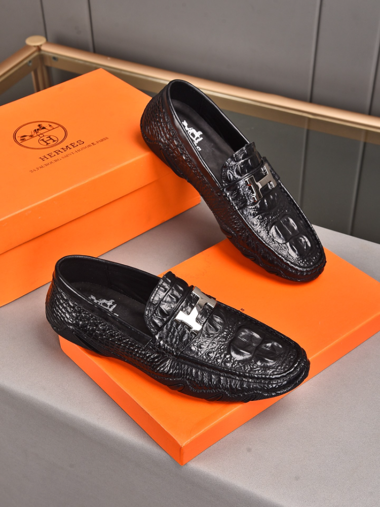 (Gift box packaging)Hermesˉ Men High Quality Genuine Leather Loafers Men Casual Shoes Slip on Men's Flats Fashion Men Shoes Male Driving Shoes