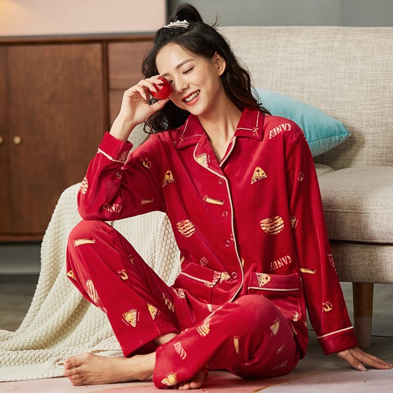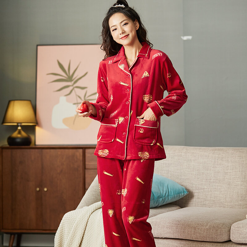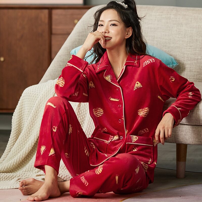 Autumn and Winter Island Velvet Pajamas Women's Warm Cardigan Homewear Loose Large Size Middle-Aged Mom Suit Outerwear