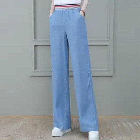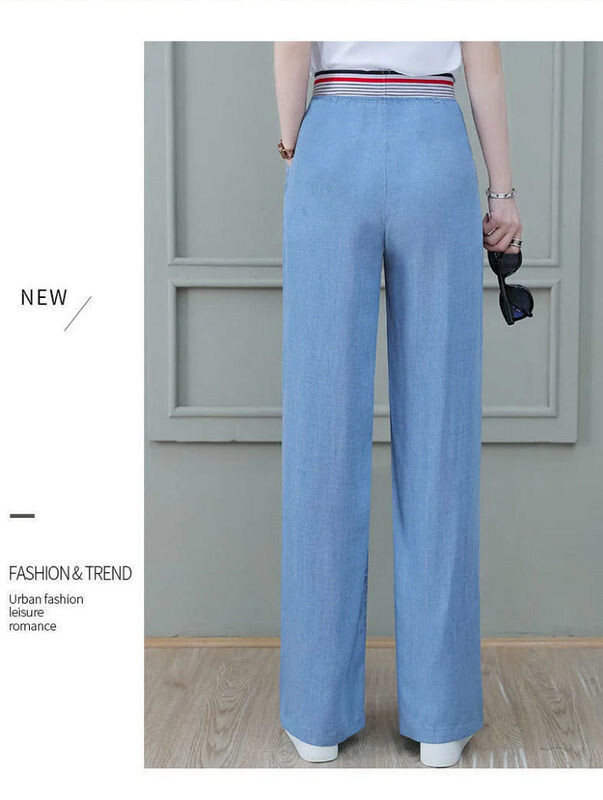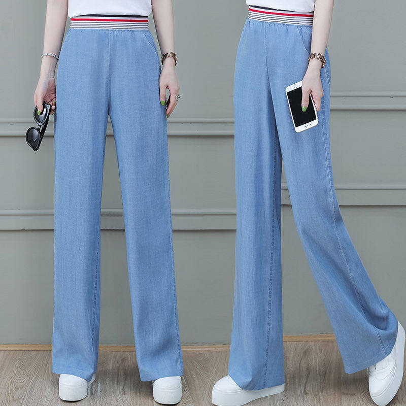 Women's Ice Silk Jeans 2023 Summer New Stretch High Waist Drooping Sensation Loose Casual Solid Color Wide Leg Pants