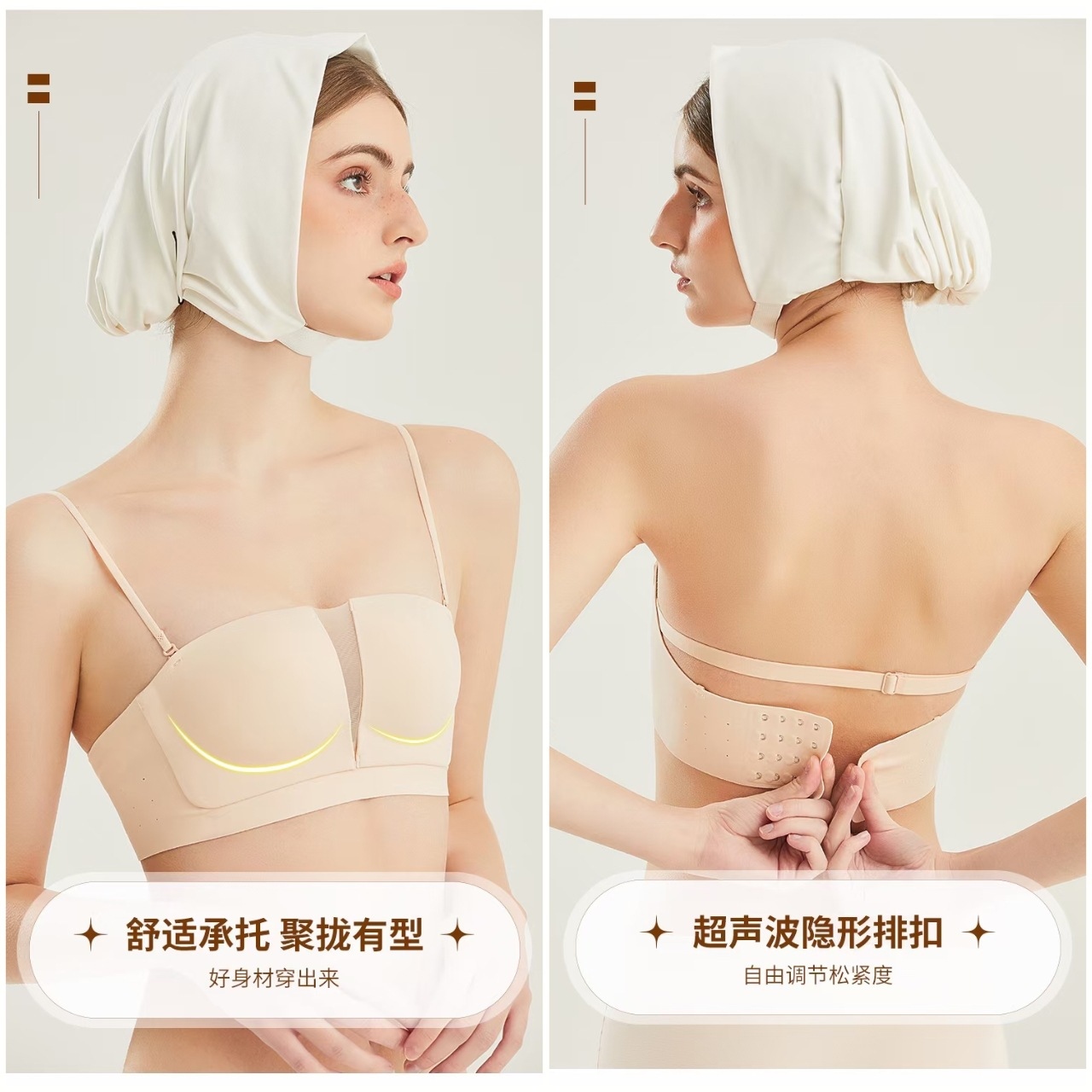 ☑ↂ Explosive high-end one-piece cup non-slip strapless tube top invisible underwear women's small breasts gathered breasts beautiful back bra