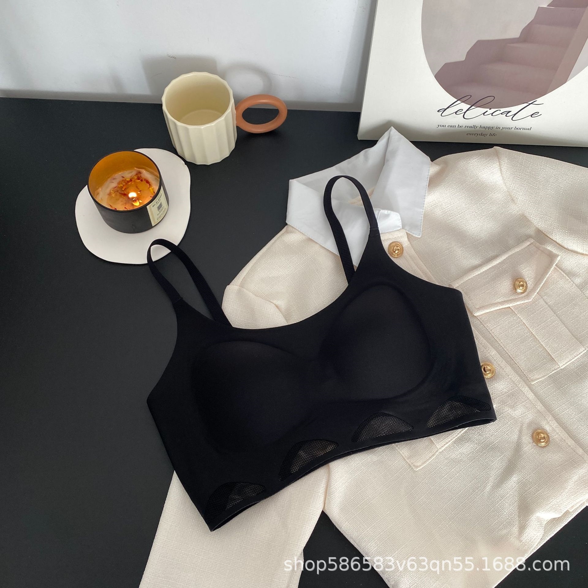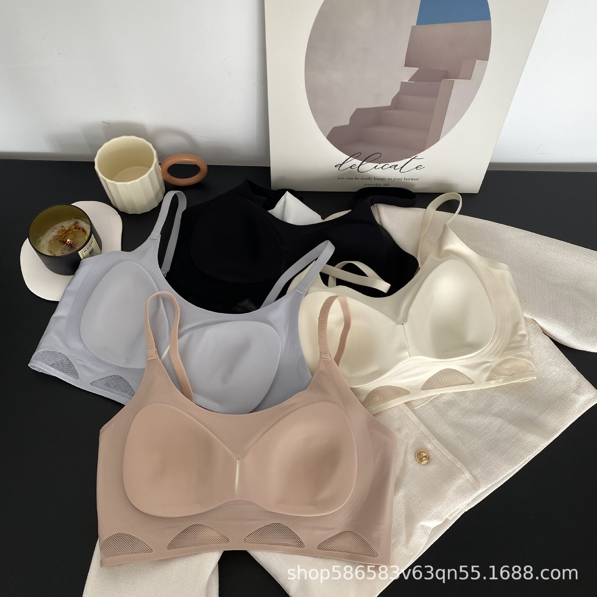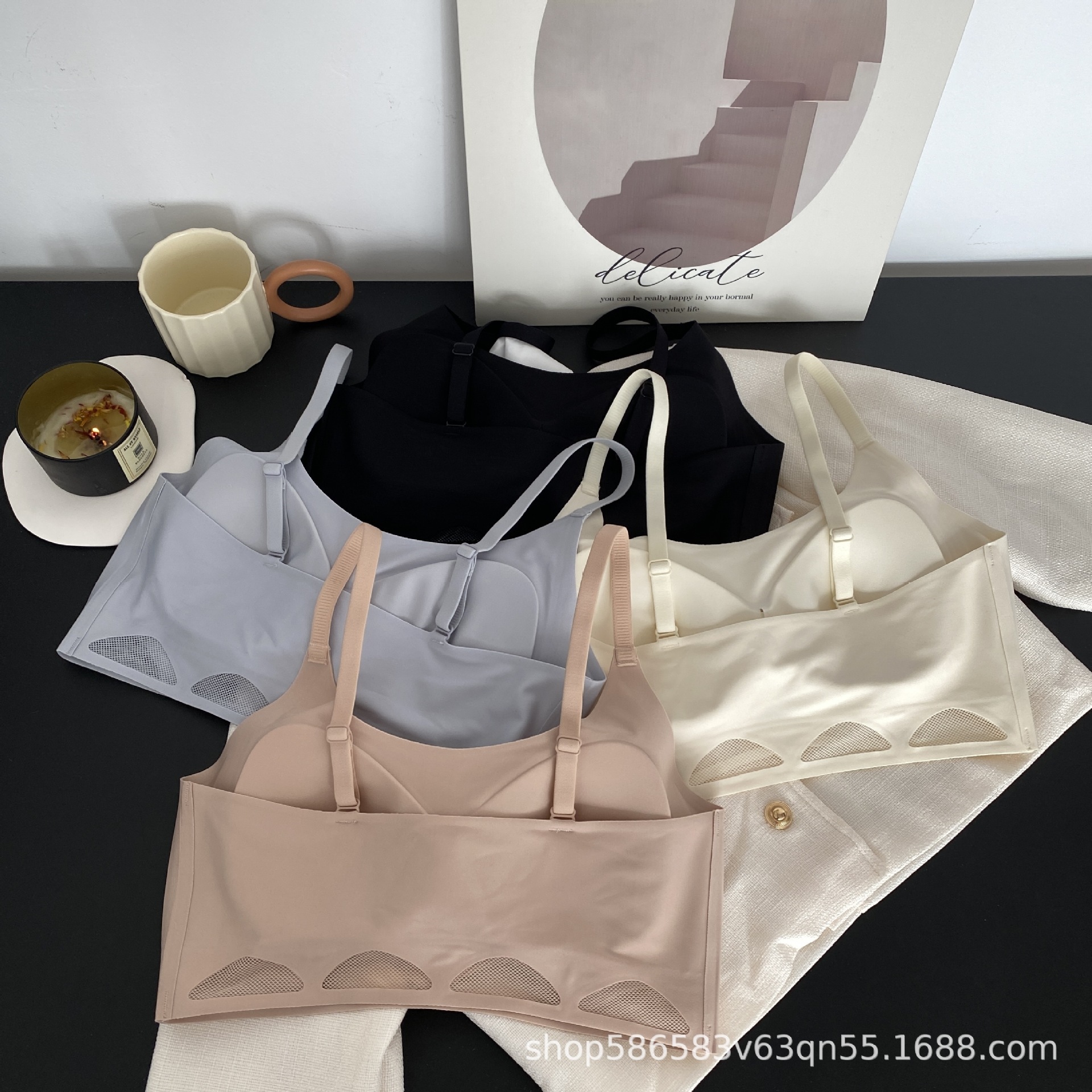 △ High-end non-trace hollow mesh jelly strip bra small breasts gathered breast strap tube top no steel ring thin underwear