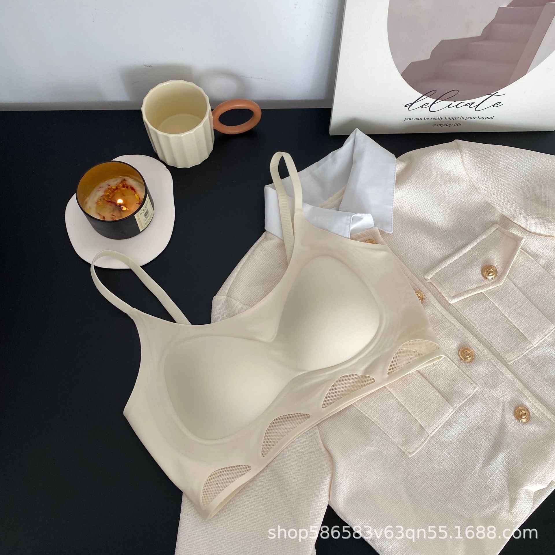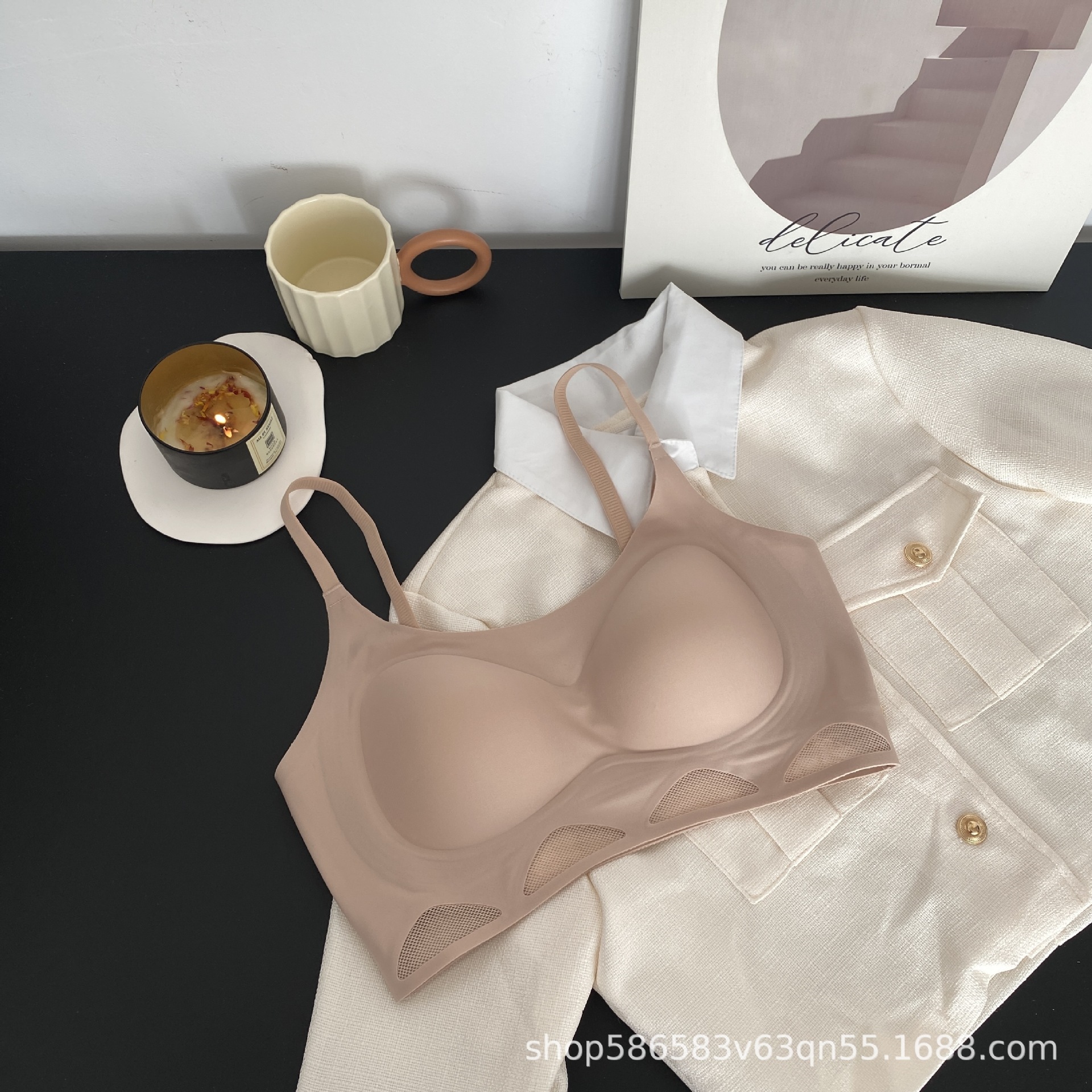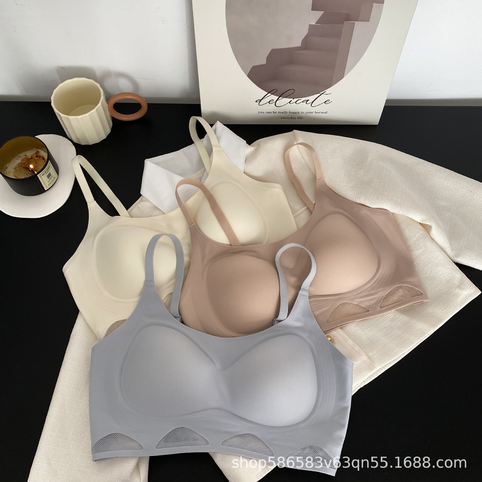 △ High-end non-trace hollow mesh jelly strip bra small breasts gathered breast strap tube top no steel ring thin underwear