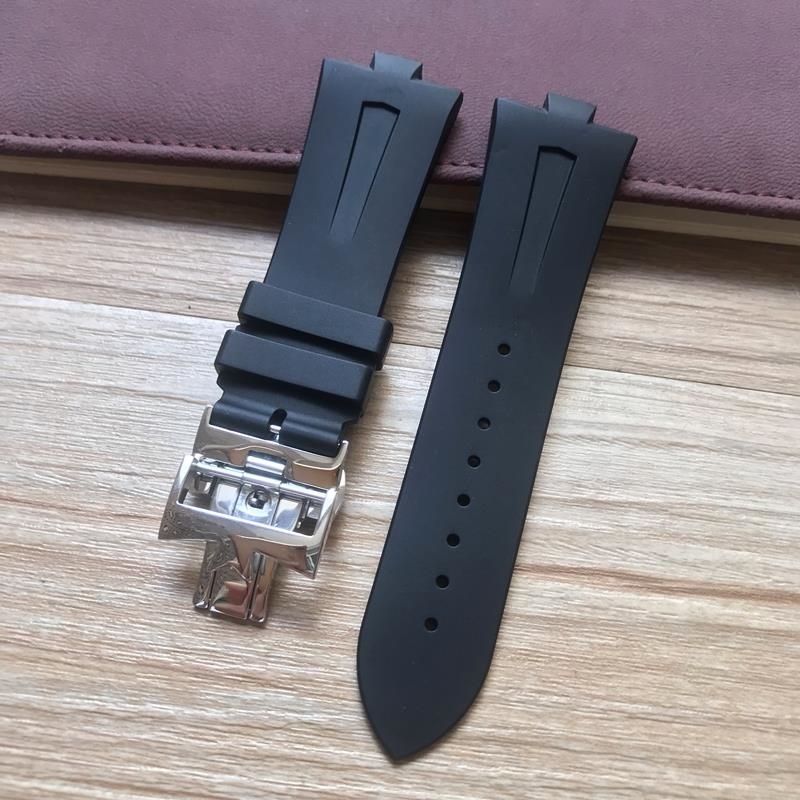 for Vacheron Constantin Across the World Series Soft and Raw Edgeless Rubber Silicone Strap 25mm Black Blue Brown