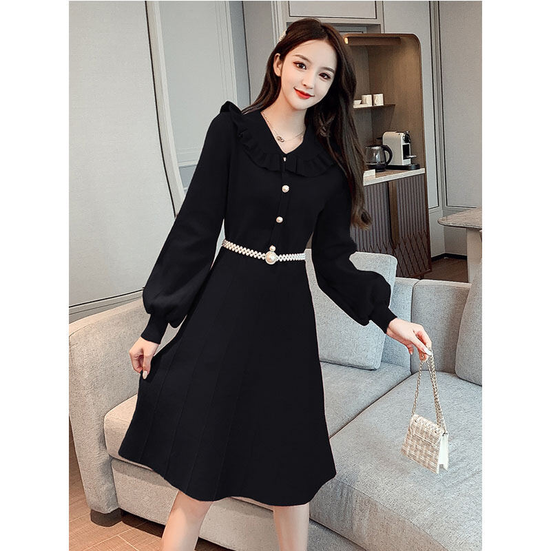 High-End Affordable Luxury Dress Women's 2022 Spring New Waist-Defined Slim Looking Temperamental Fairy Doll Collar Knitted Skirt Trendy