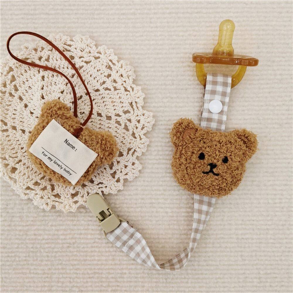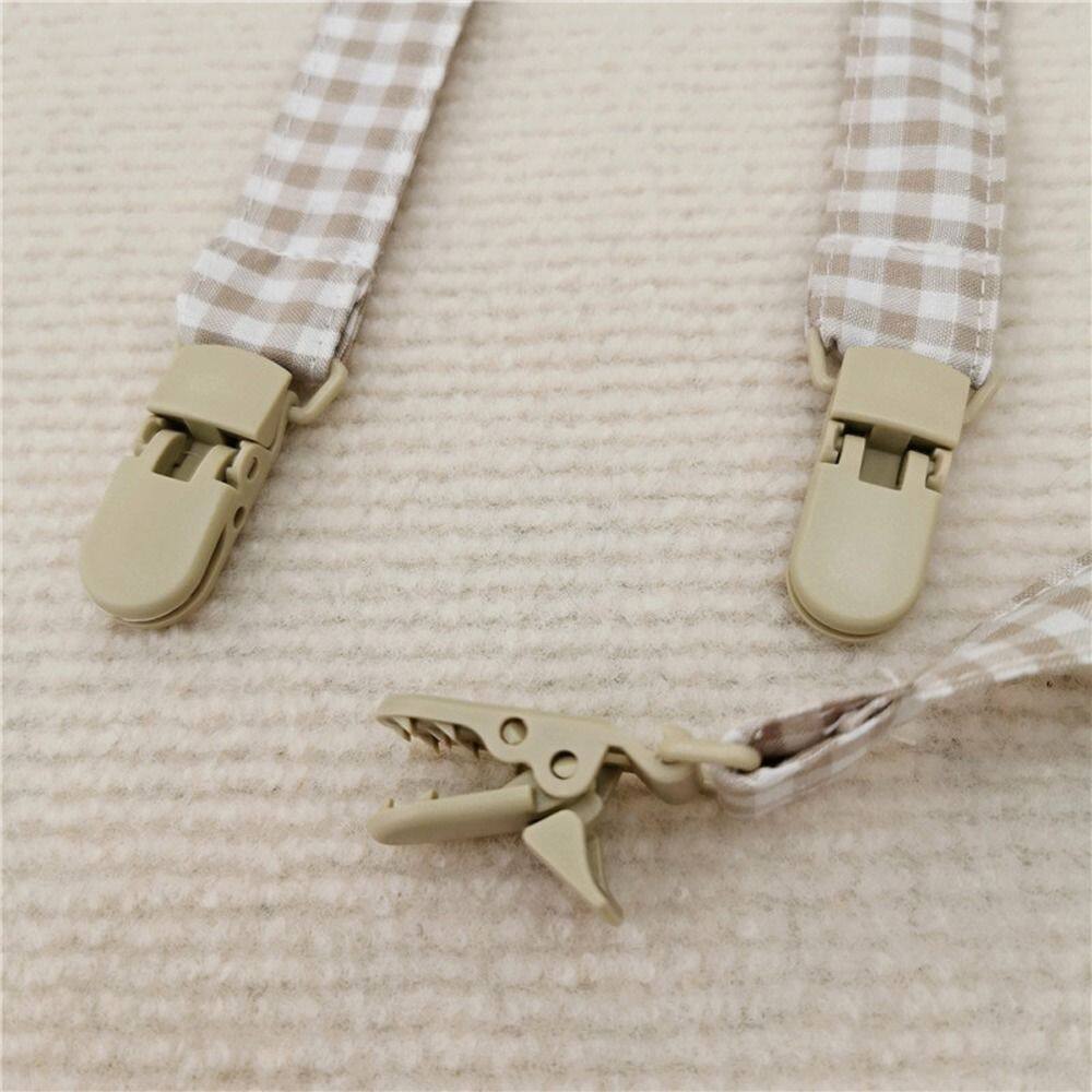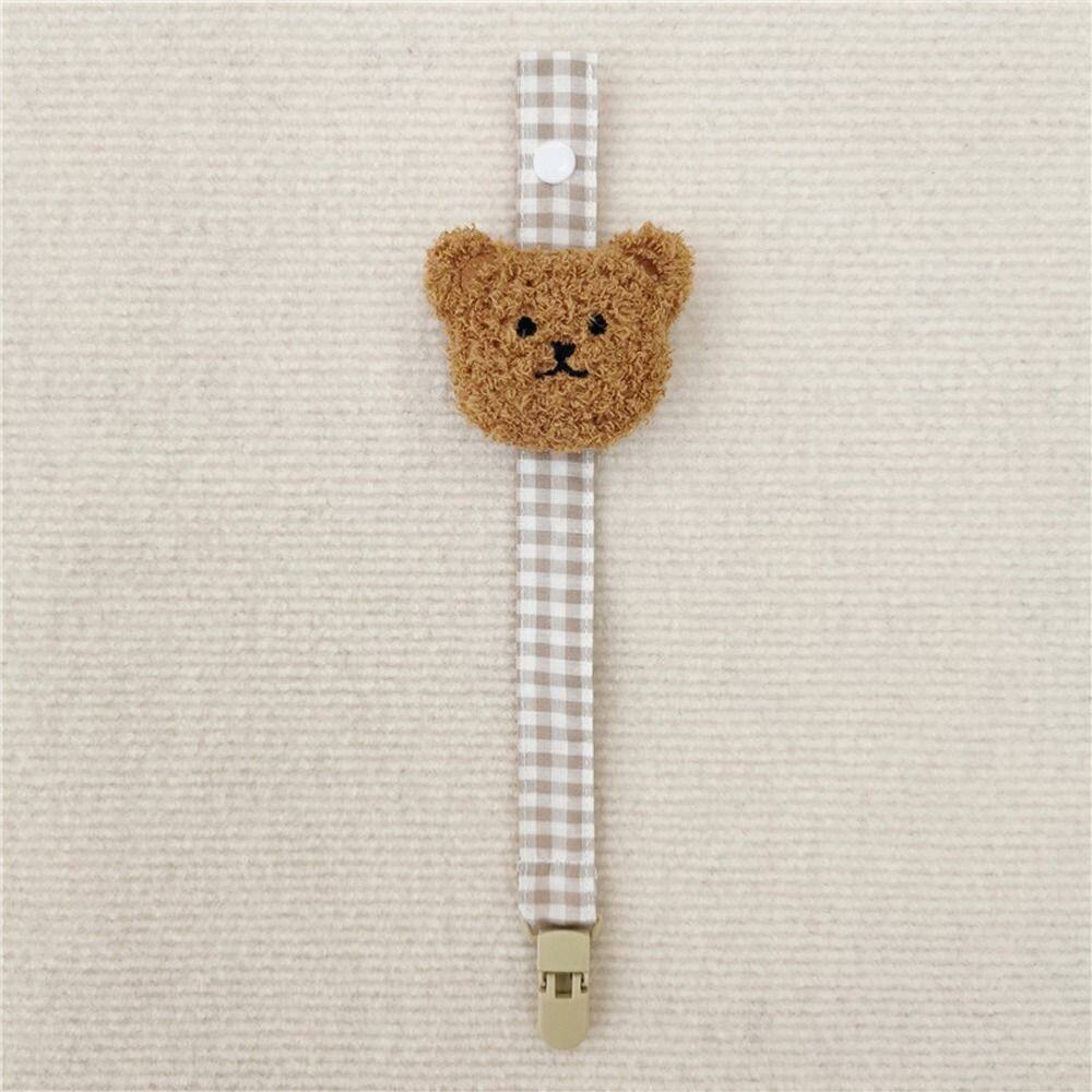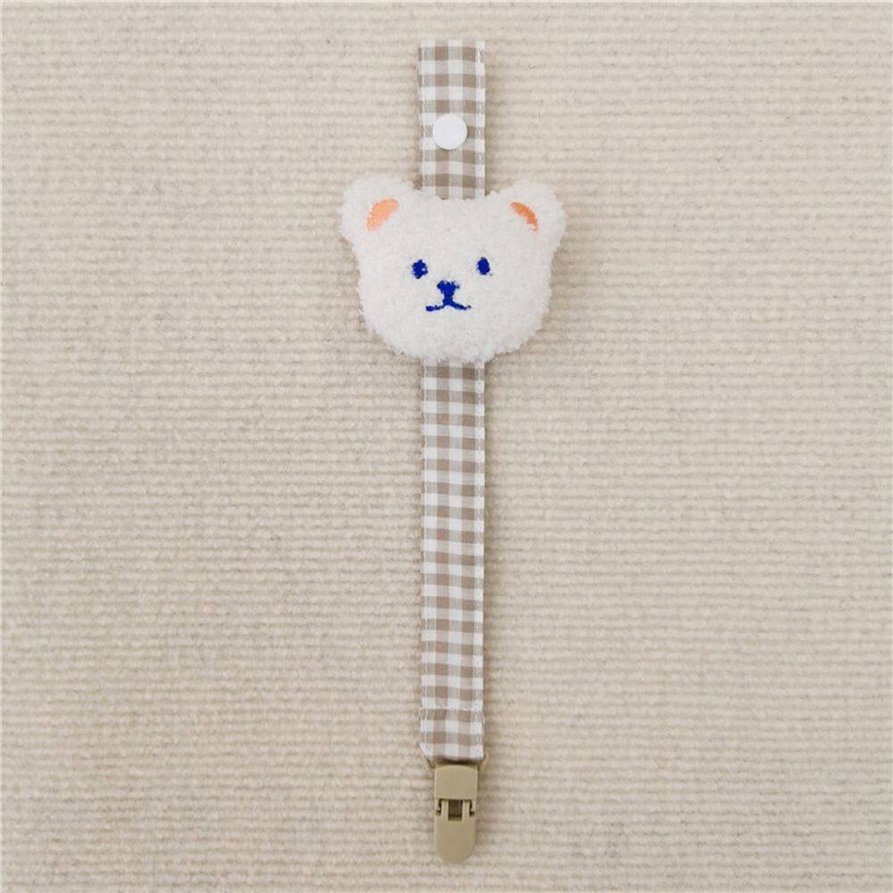 The nipple chain is clamped in the baby's skirt to prevent the nipple from getting dirty on the ground.