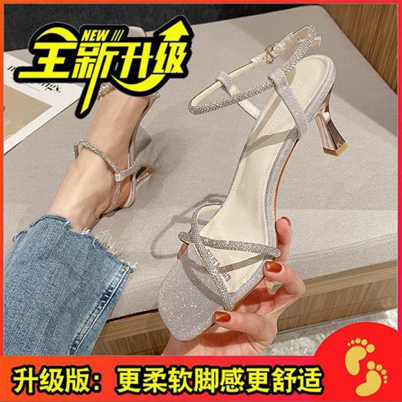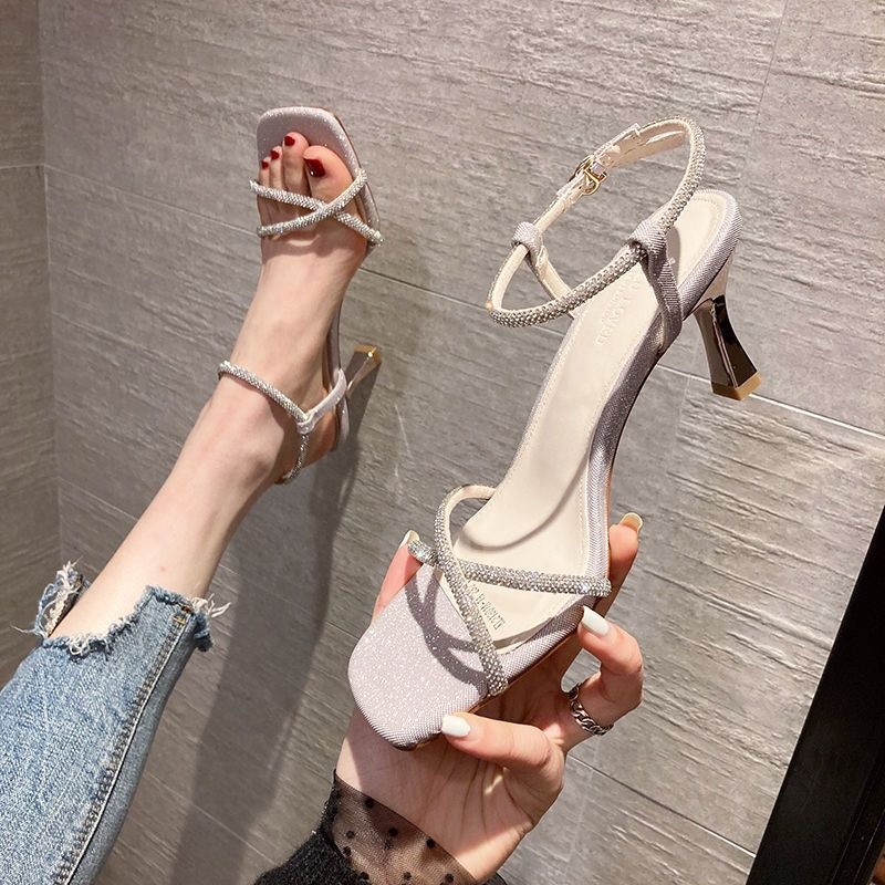 -word buckle rhestone women's s open toe 23 summer new all-match fairy style high heels stto C427❈▤№