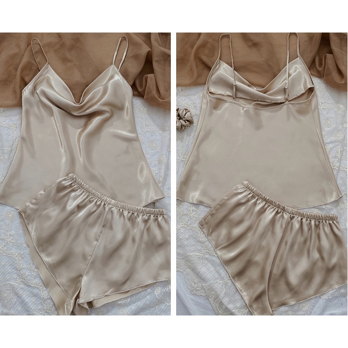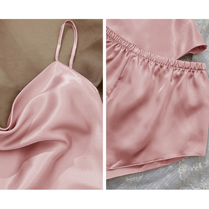 2 Pieces Ladies Sexy Silk Satin Pijama Set Sleeveless Sleepwear Set Top and Shorts.