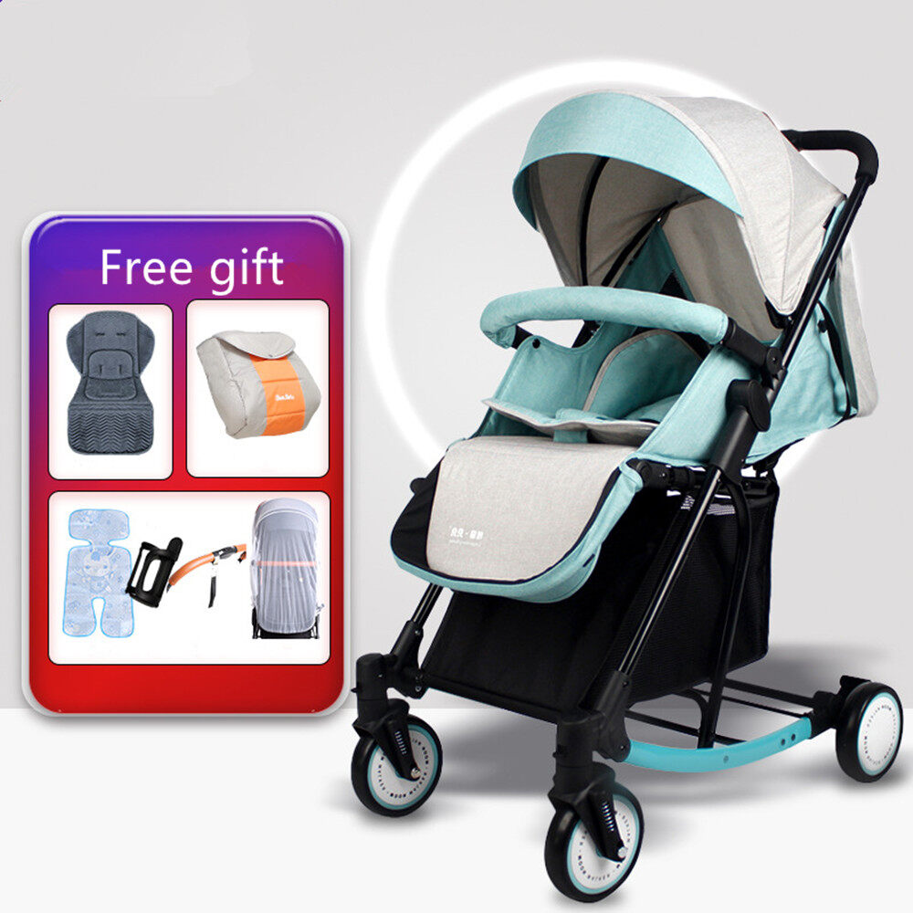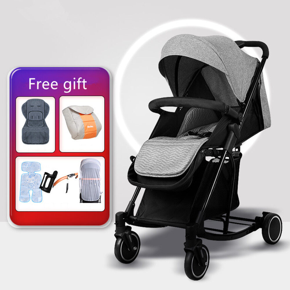 Baby Stroller Travel High Landscape Pram Can Sit and Lie Portable Foldable Umbrella Cart Lightweight Can Be Turned Into Rocking Chair