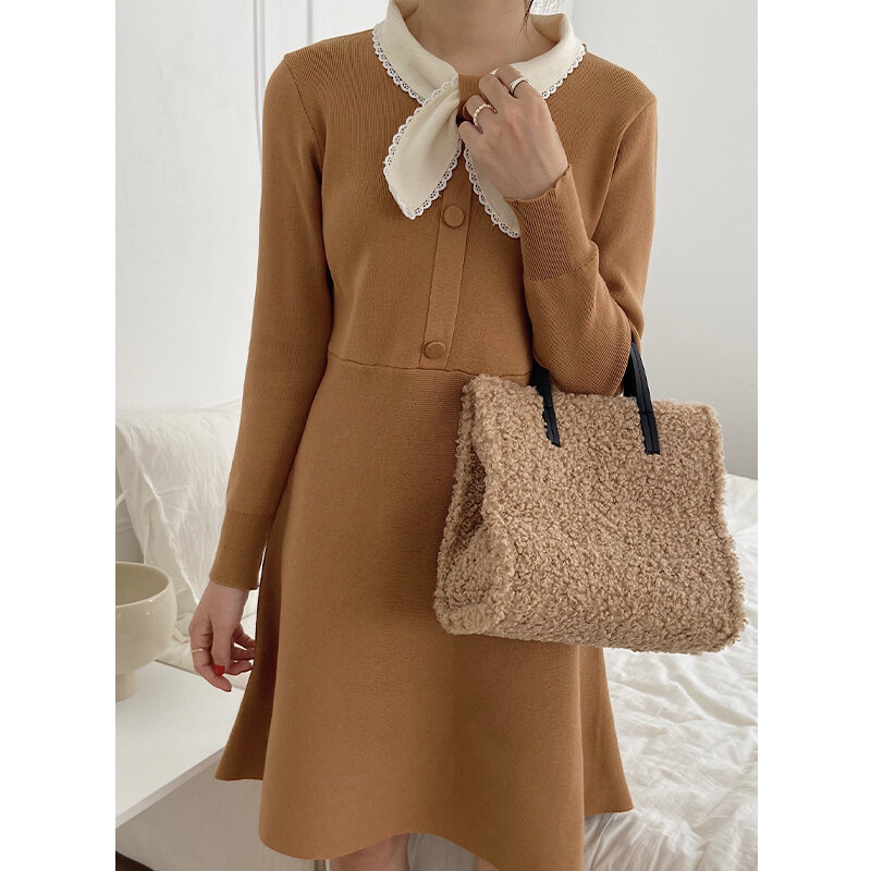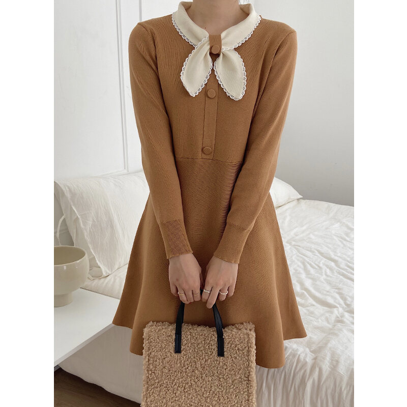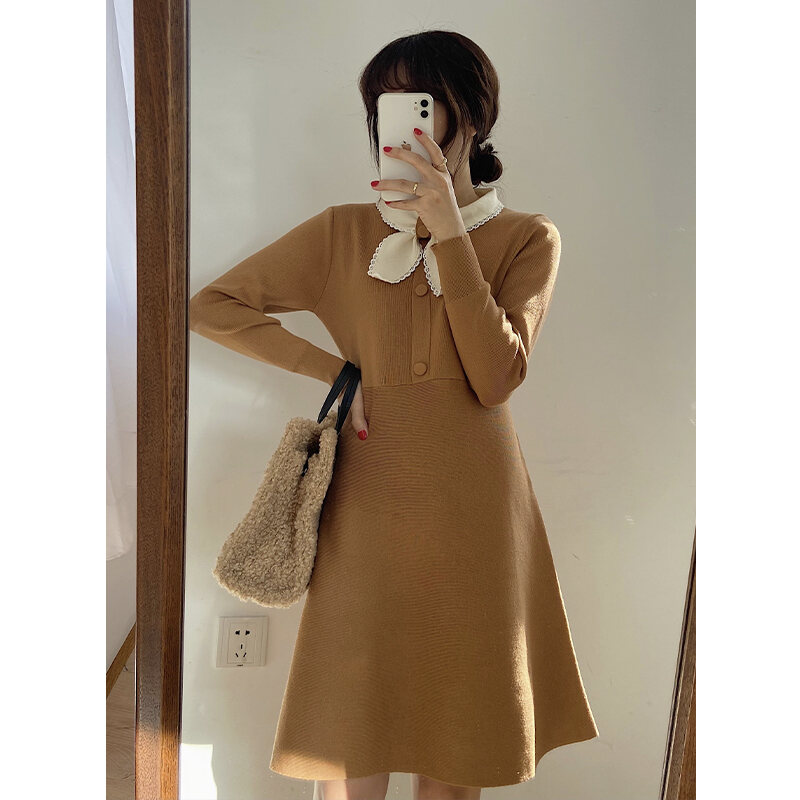 Special Offer Is Not Refundable ~ Only Khaki ~ Autumn and Winter Long-Sleeved Elegant Bow Bandage Knitted Slimming Dress