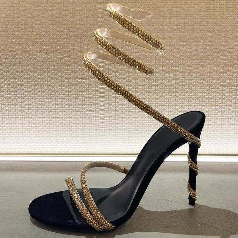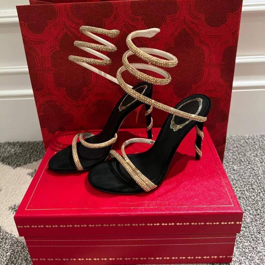 23 early spring Rene Caovillaˉhigh-heeled rhinestone snake-shaped winding buckle sandals strappy sandals sexy ladies fine heels