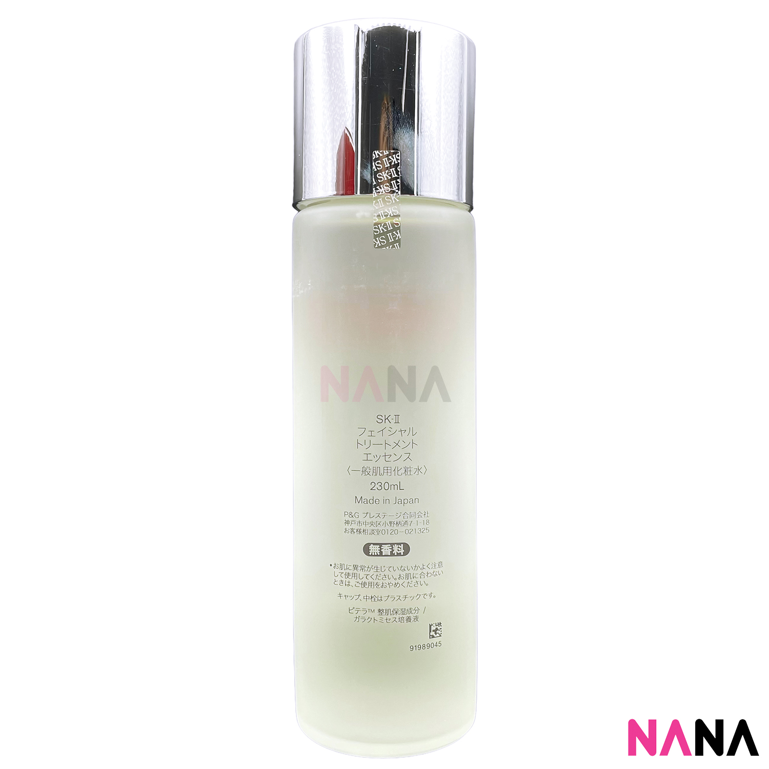 SK-II Facial Treatment Essence (230ml)Facial Treatment Essence is SK-II’s signature product, it contains over 90% Pitera™ that enhances skin regeneration and skin becomes breathtakingly crystal clear.Multiple Features:- Helps moderate the skin surface renewal cycle- Exfoliates dead skin cells and impurities- Increases skin's ability to absorb nutrients from other skincare products- Reduces appearance of wrinkles and age spots- Enhances firmness and radianceHow to use:Soak a cotton pad and gently smooth onto your face for 1 minute. Turn the cotton pad around and gently pat onto your face and neck for another minute. Apply every morning and night after cleansing and toning.