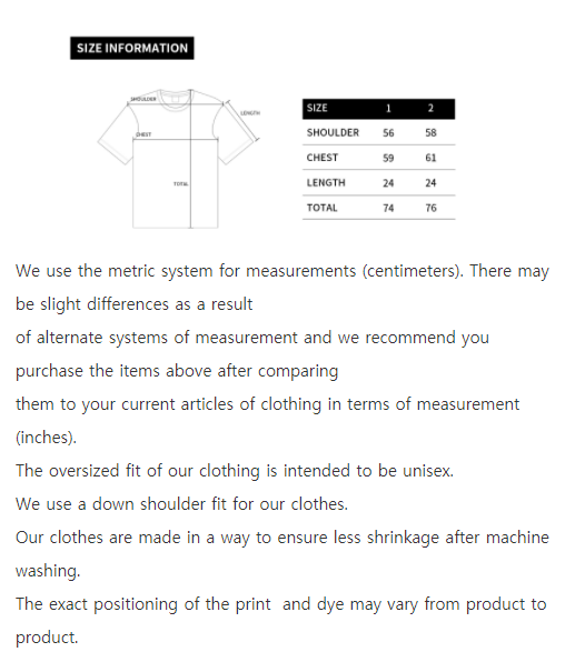 ★ We recommend you purchase the items above after comparing them to your current articles of clothing in terms of measurement (inches).