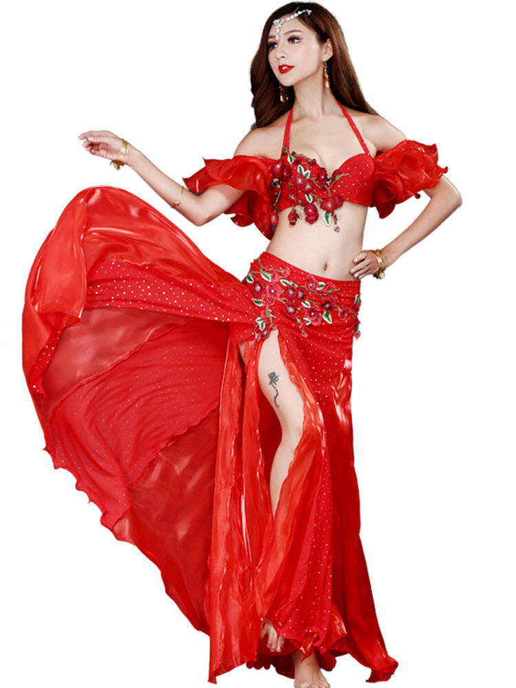 2022 High-End Indian Dance Spring and Summer New Belly Dance Bra Pearl Embroidery Stage Performance Performance Dress Set Adult Women