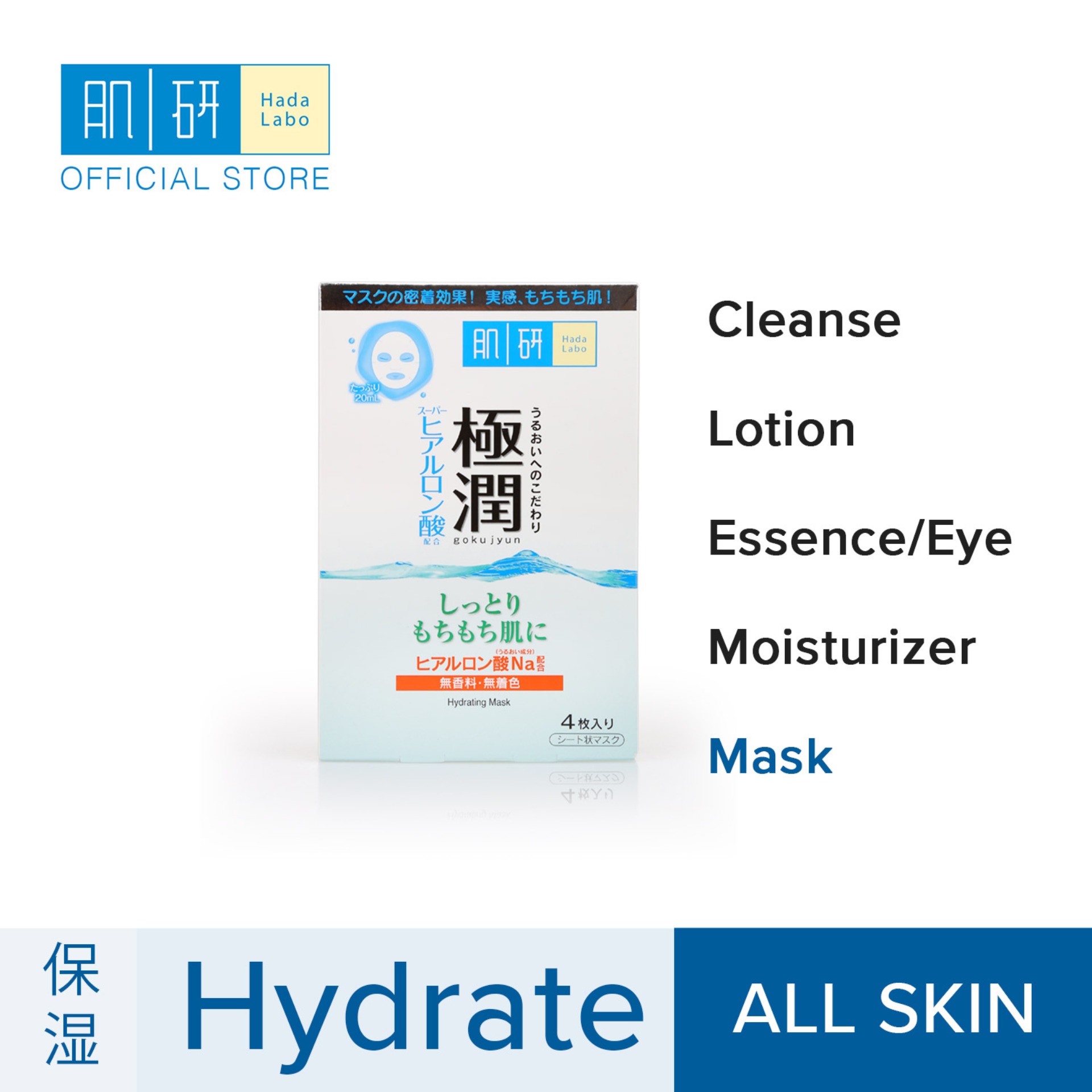 HADA LABO Hydrating Mask (Hydrating Sheet Mask With Hyaluronic Acid To Hydrate Dry & Dehydrated Skin) 4s