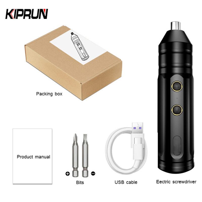 KIPRUN 3.7V Mini Electrical Screwdriver Set Smart Cordless Electric Screwdrivers USB Rechargeable Handle with 2 Bit Set Drill