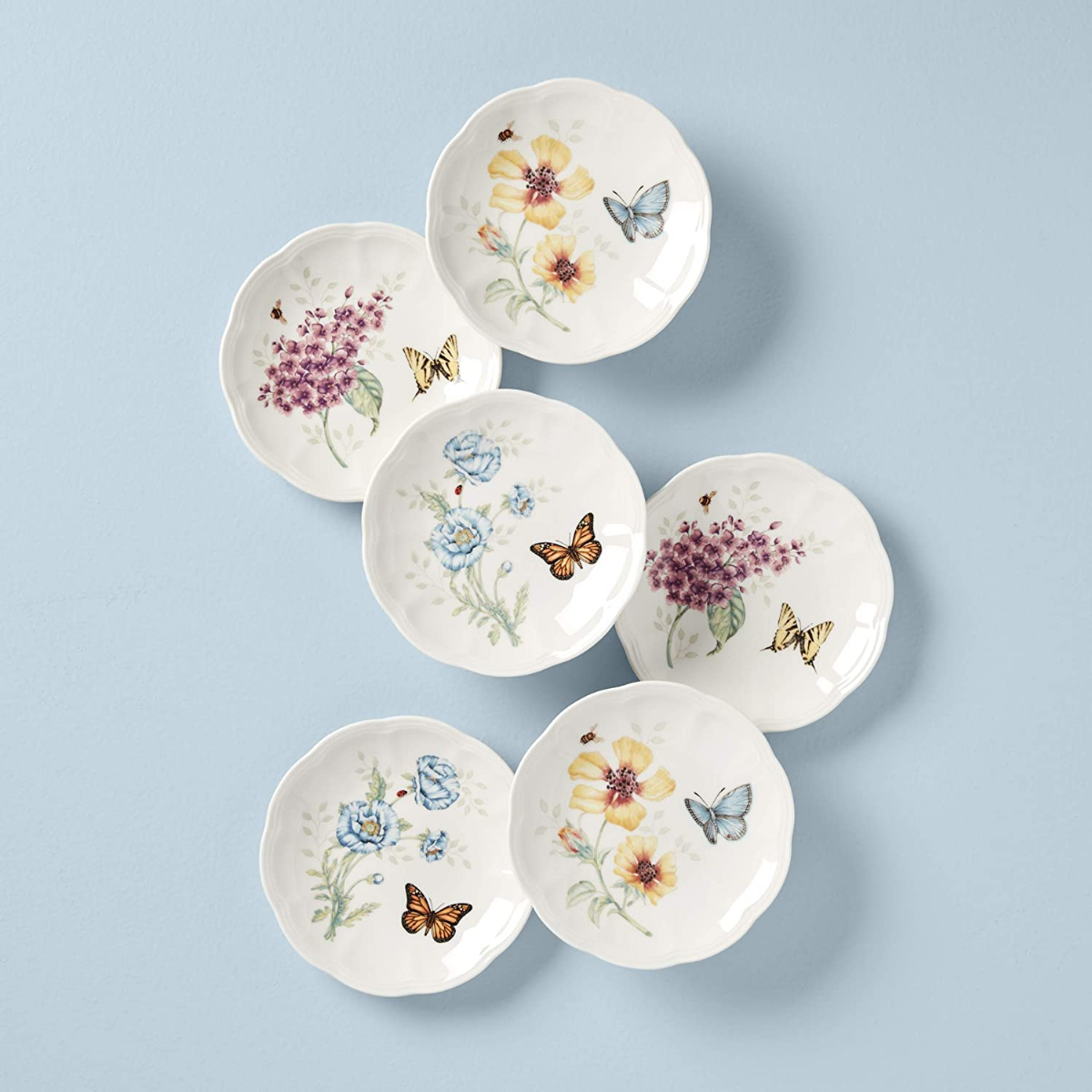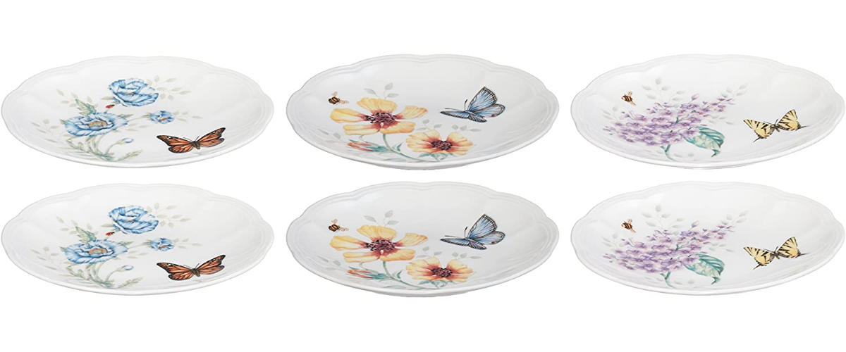 Lenox Butterfly Meadow 6-Piece Tidbit Plate Set, 3.05 LB, Multi