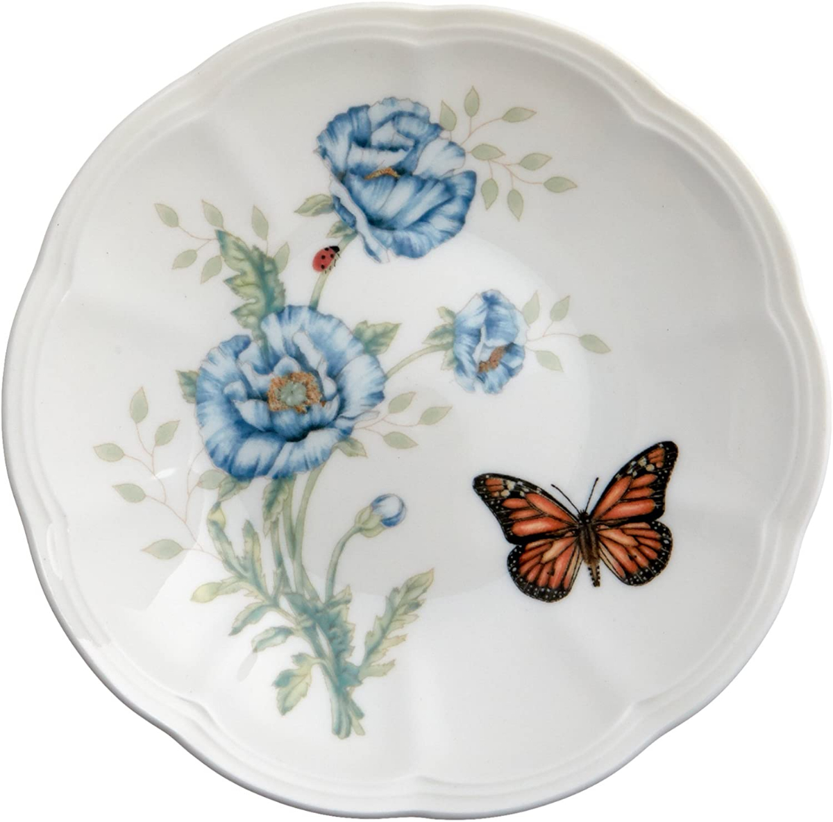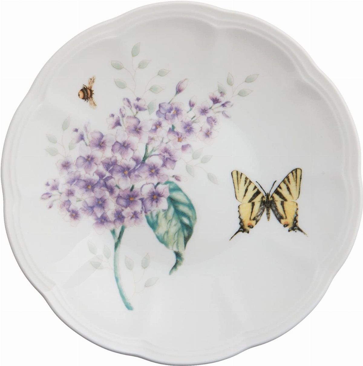 • Lively butterflies, dragonflies and bumblebees buzz about a variety of vibrant flowers on the Butterfly Meadow dinnerware collection. This pattern features elegant scalloped edges on durable white ceramic porcelain. This mix-and-match classic collection is both dishwasher and microwave safe, making it perfect for everyday use.