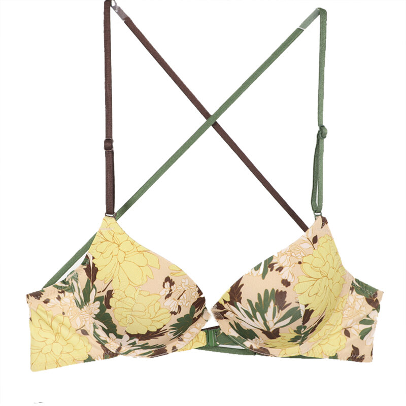South korea Women Underwear Front Buckle Beauty Back Print Bra Sexy Push up Comfortable Girl Thin Bra Set