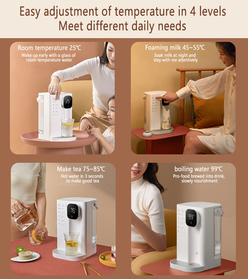 *4 sections of temperature control + adjustable every 1°C, normal temperature/milk/tea/boiling water 25-99 degrees, can be adjusted every 1° to meet your different needs. (The new upgrade)