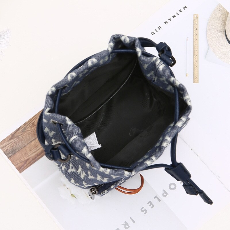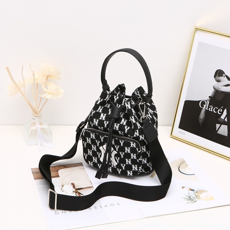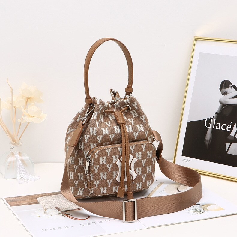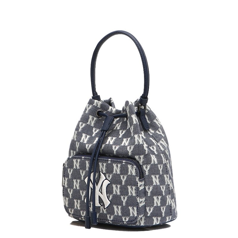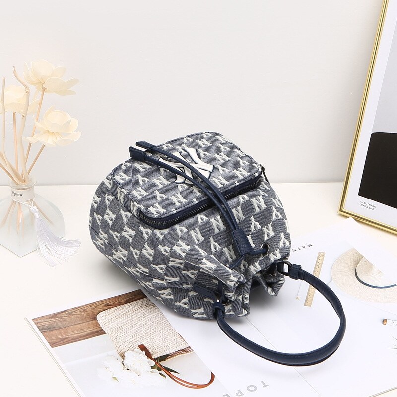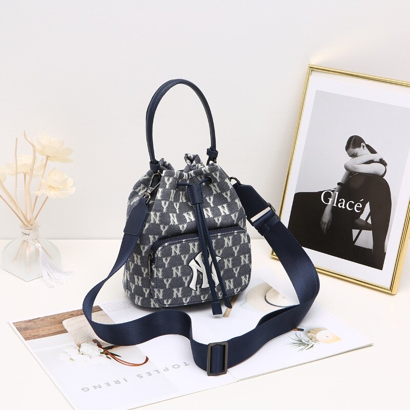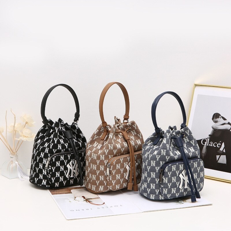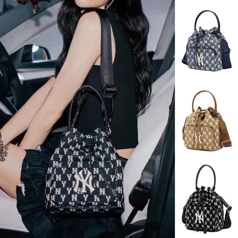 ☃㍿♘ South Korea's new MLB ny full bucket bag printing embroidery denim women's single shoulder inclined shoulder bag web celebrity ins handbag